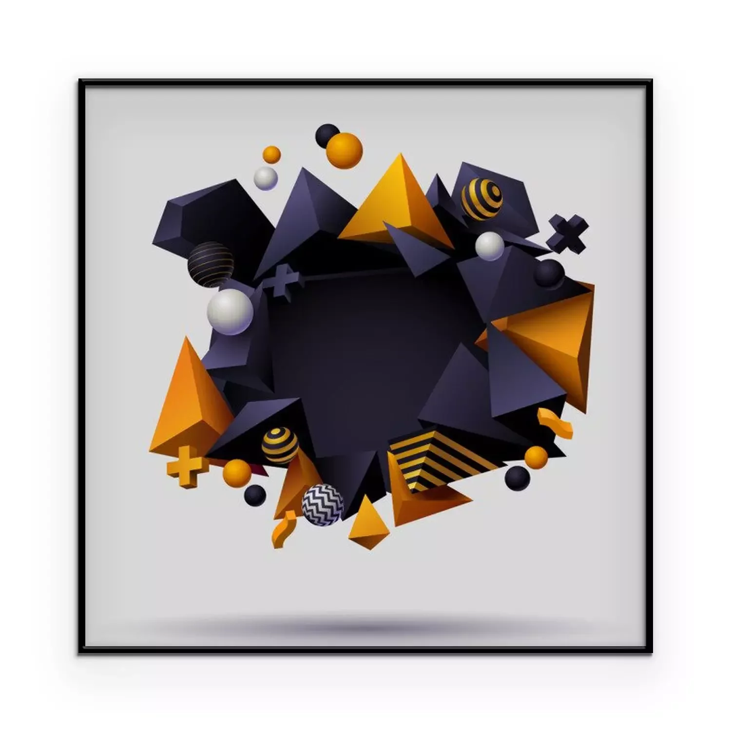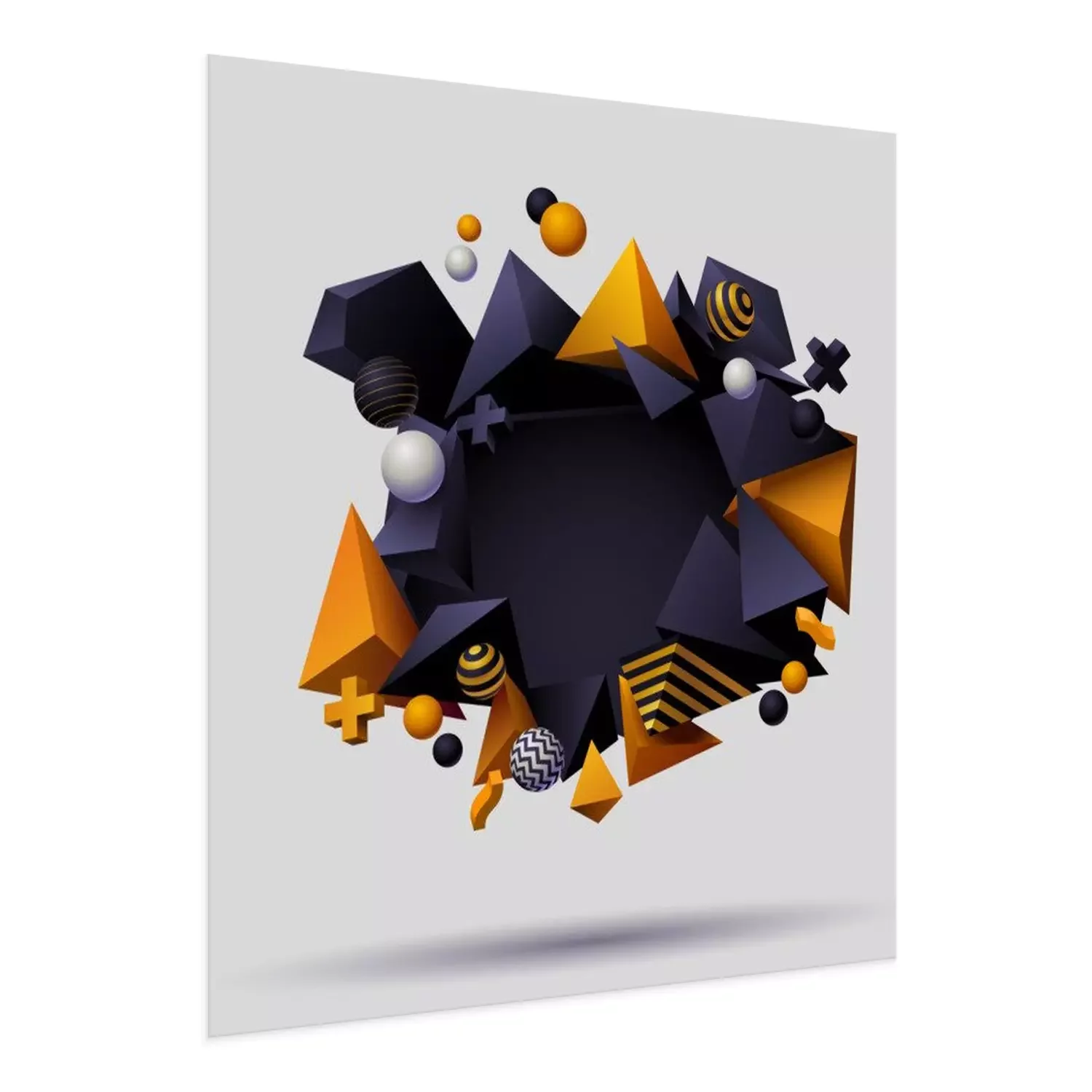Poster : Formes géométriques abstraites 3D. Design de fond moderne avec la place pour le texte. Jaune, blanc, noir et or. Vecteur EPS10