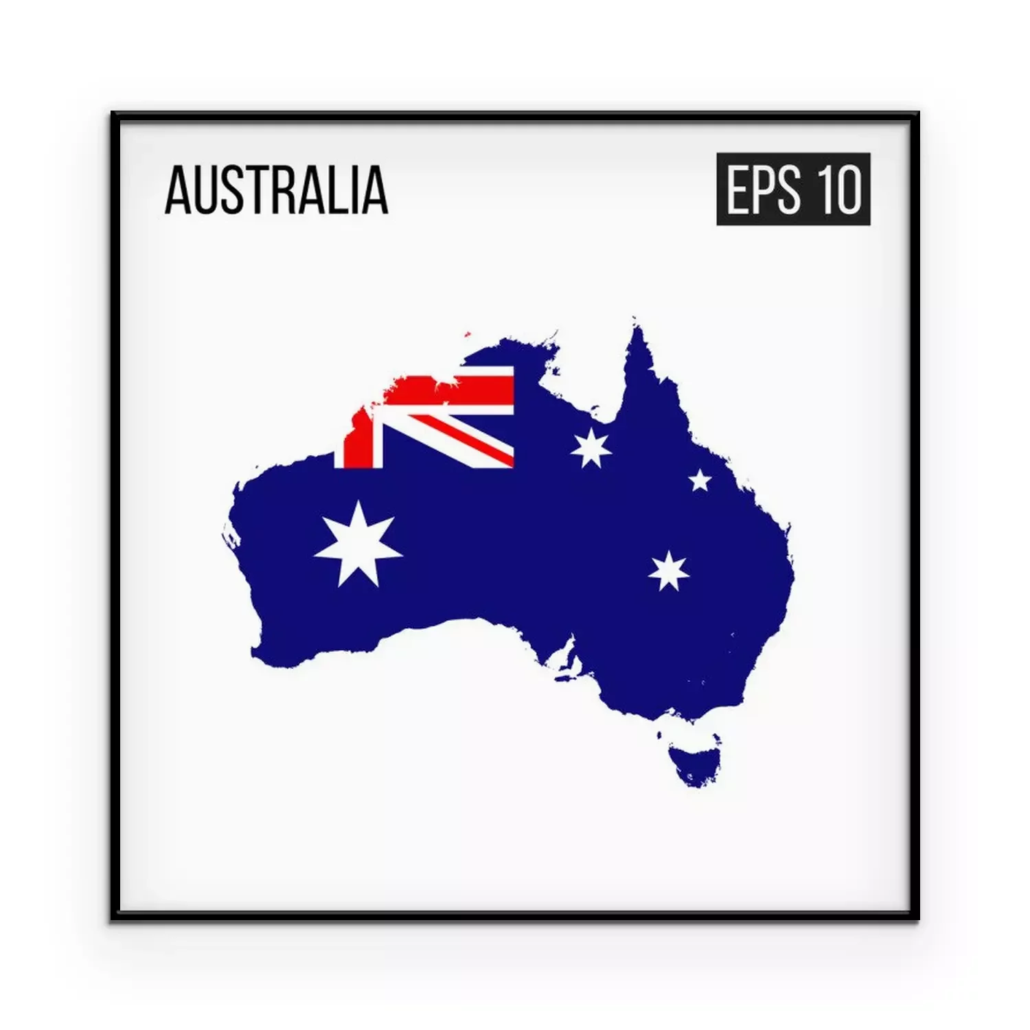 Poster : Frontière de carte de l'Australie avec le vecteur de drapeau EPS10