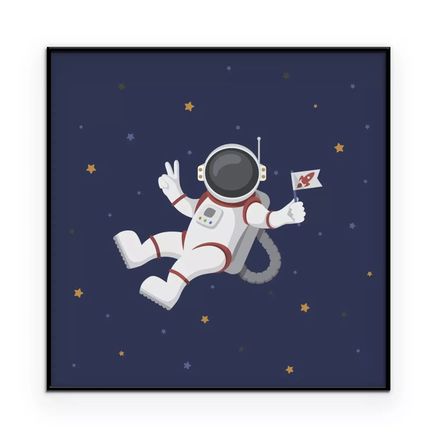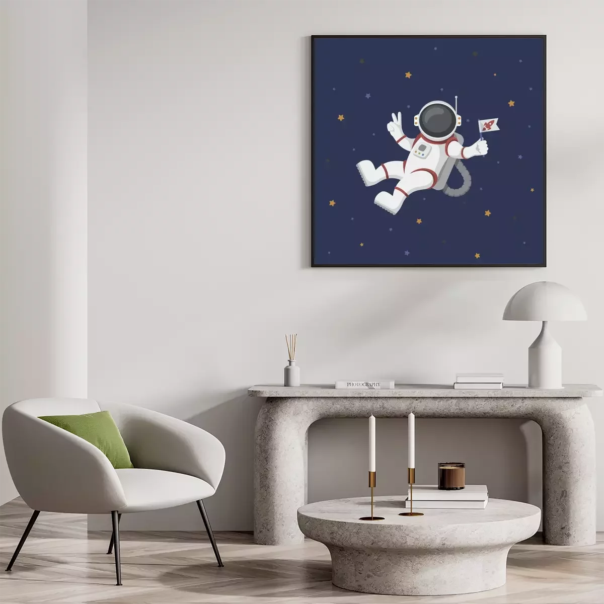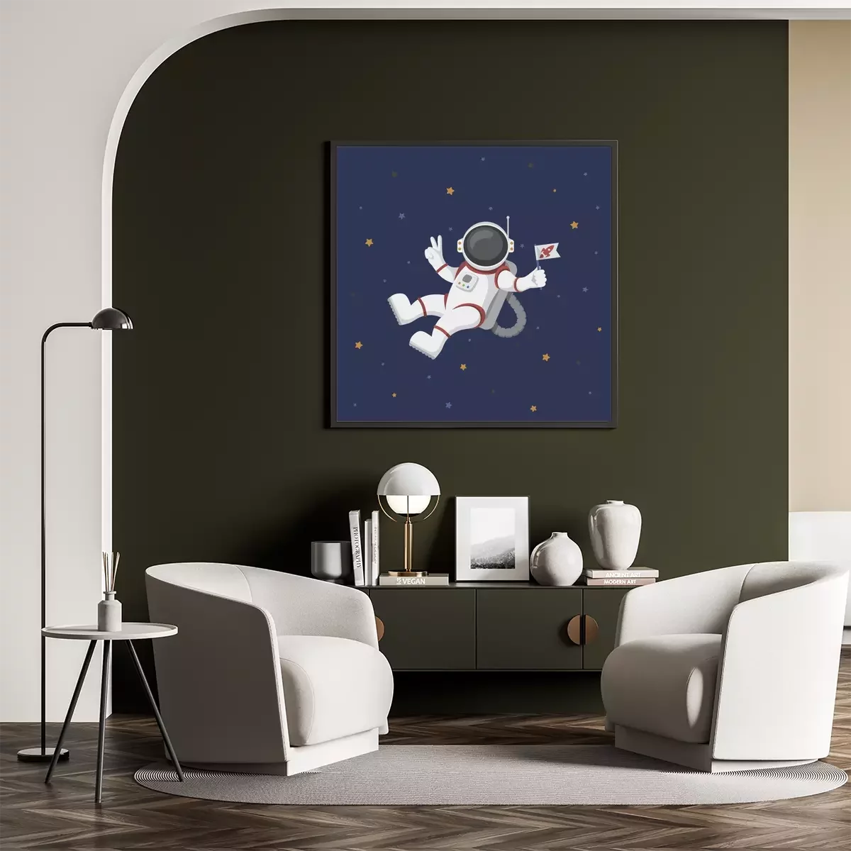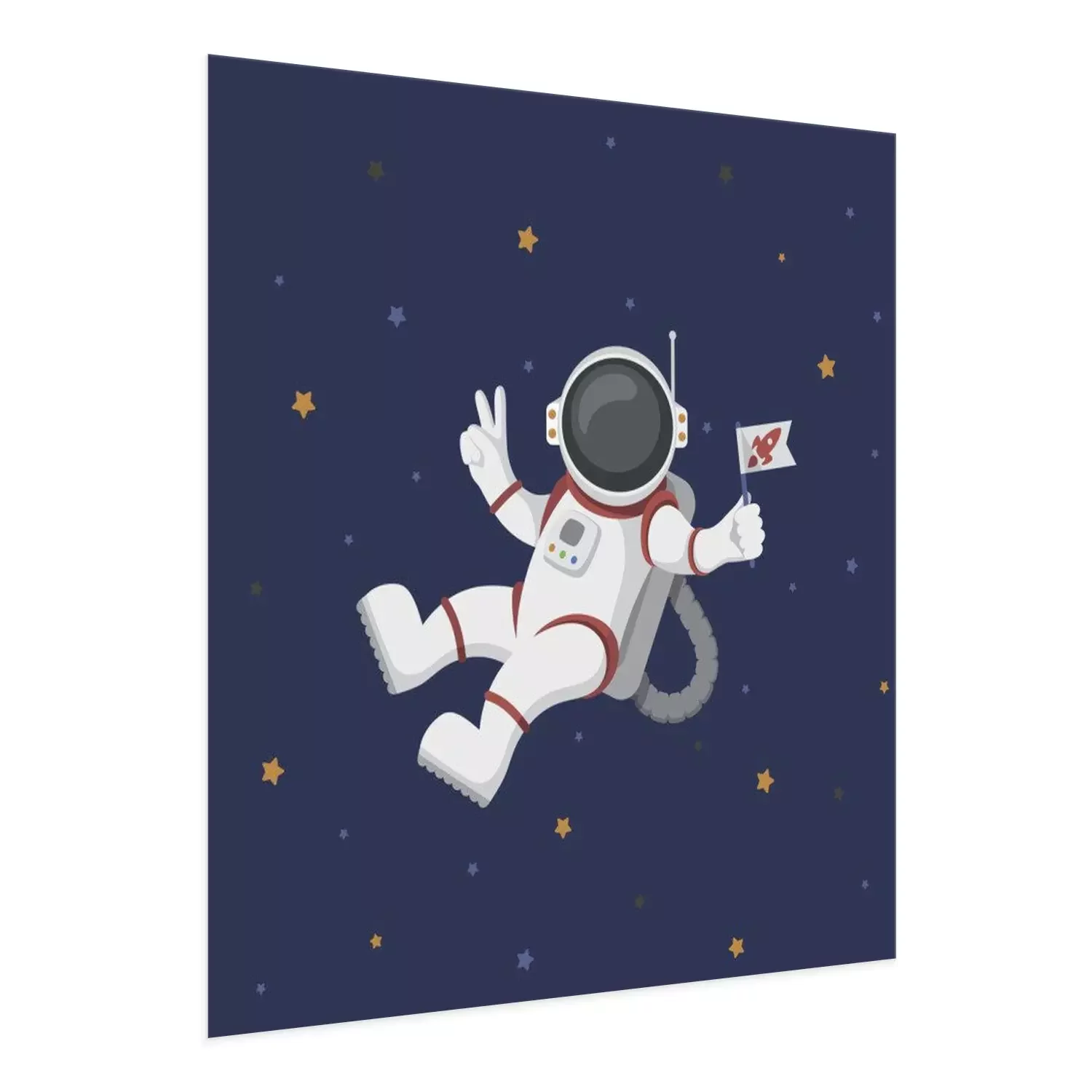Poster  Funny astronaute volant dans l'espace avec des étoiles autour