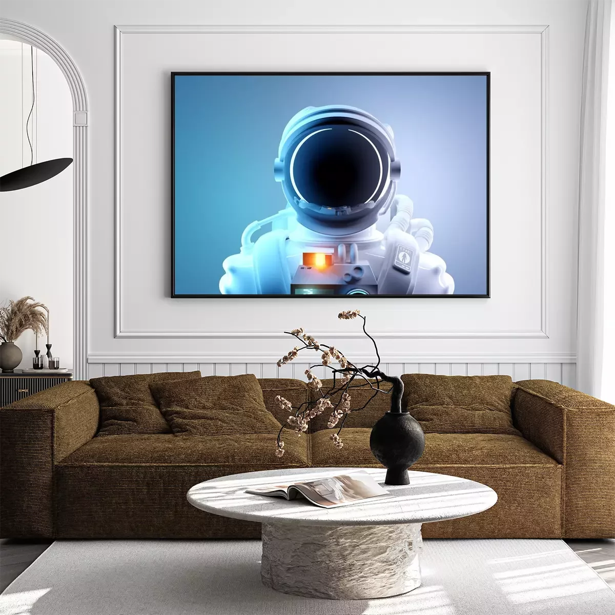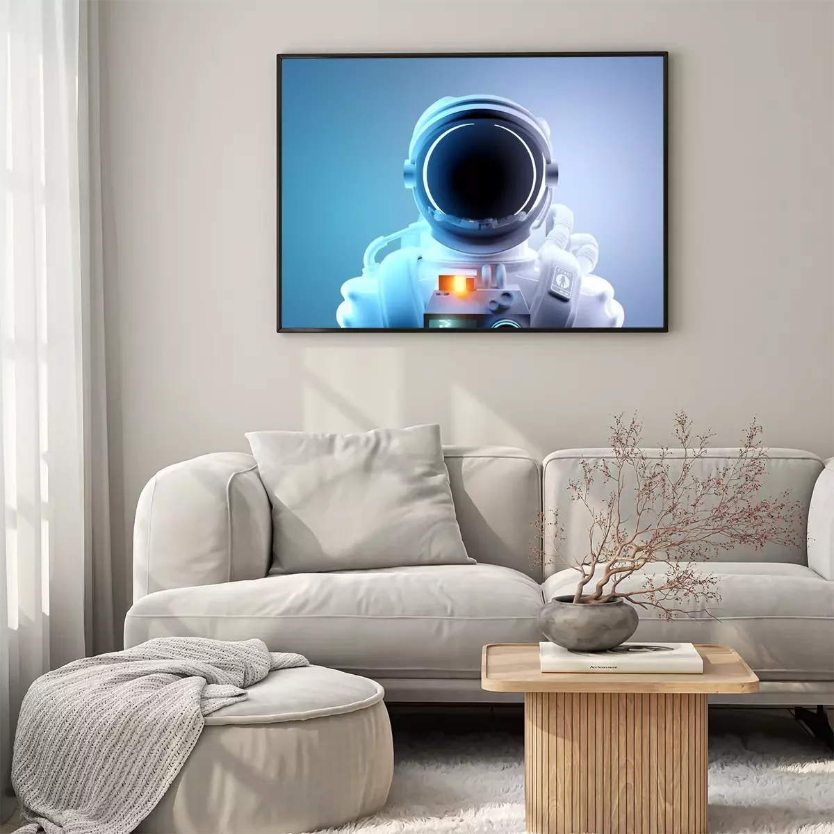 Astronaute sur fond de rayures