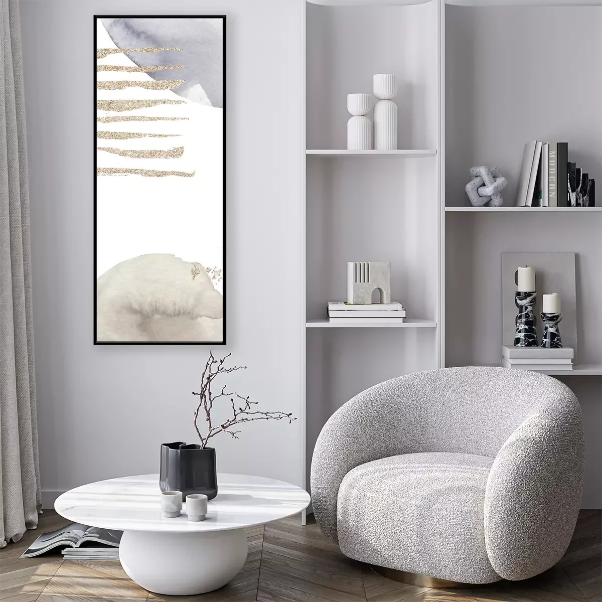 Poster : Geometric poster with watercolor and gold elements on white background. Abstract nordic print. Scandinavian style. Hand drawn illustration. Mixed media art collage