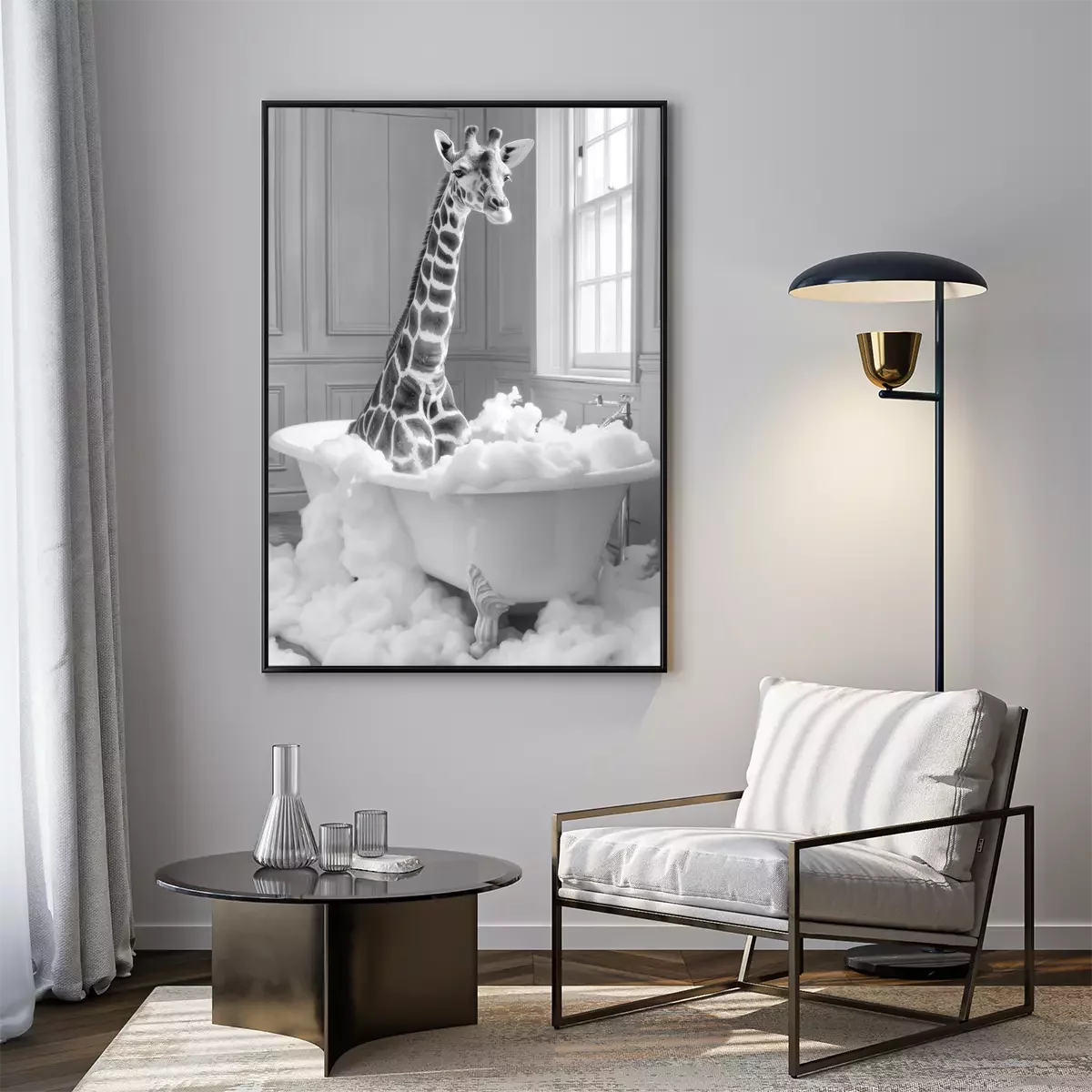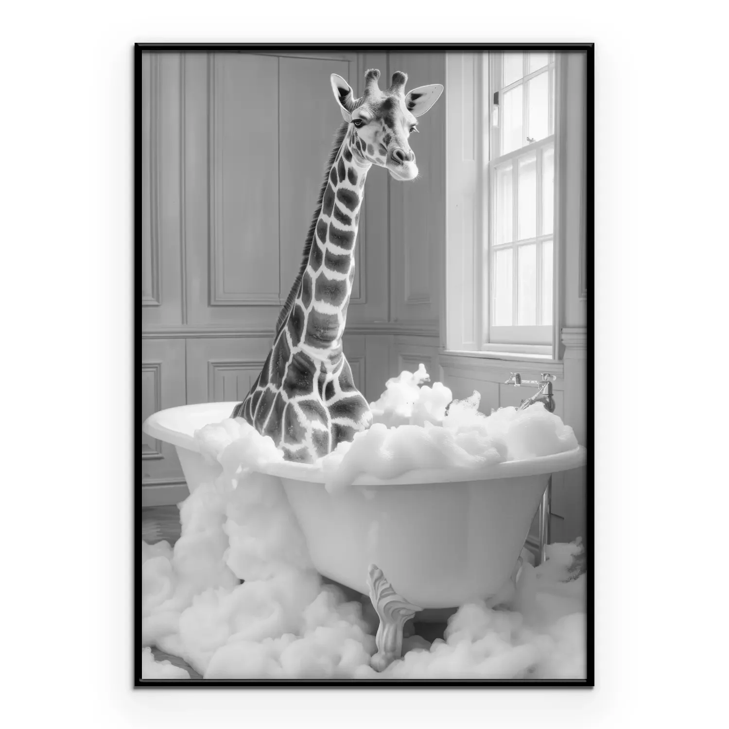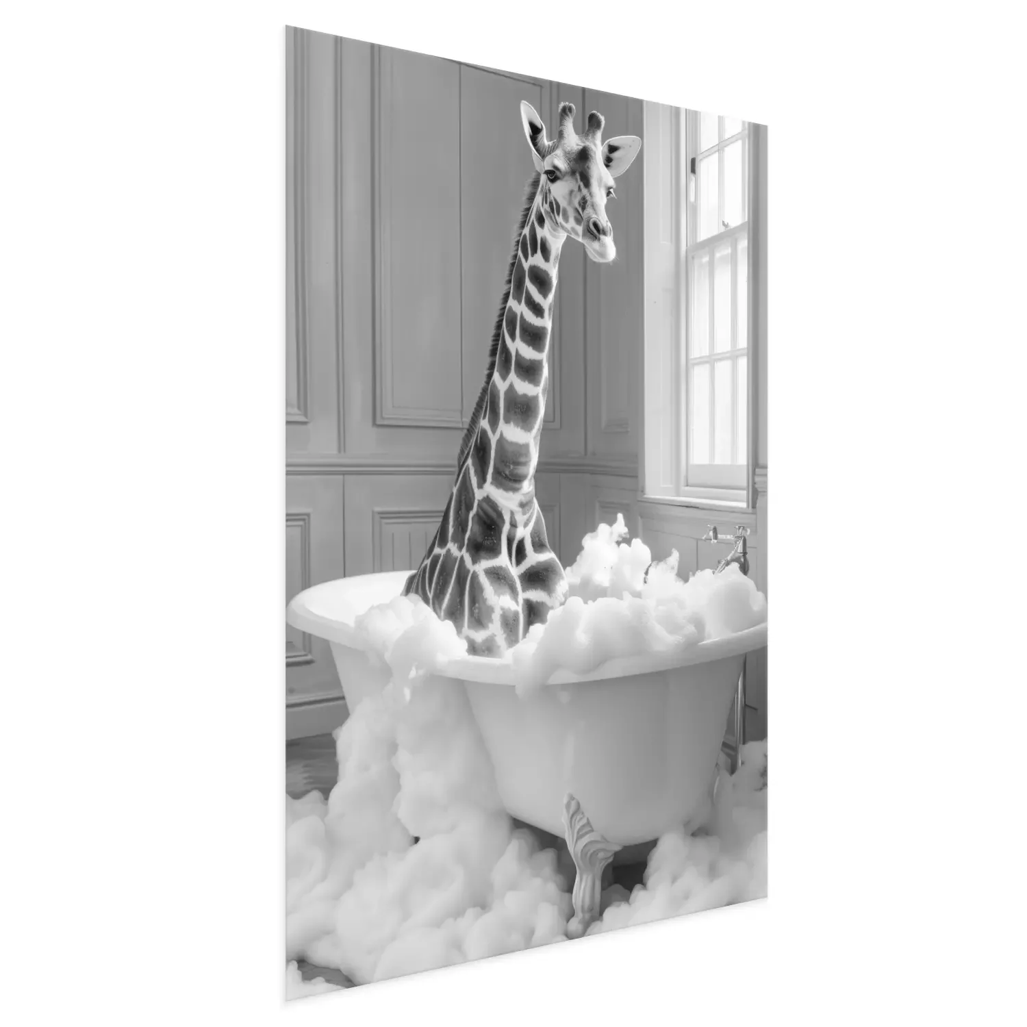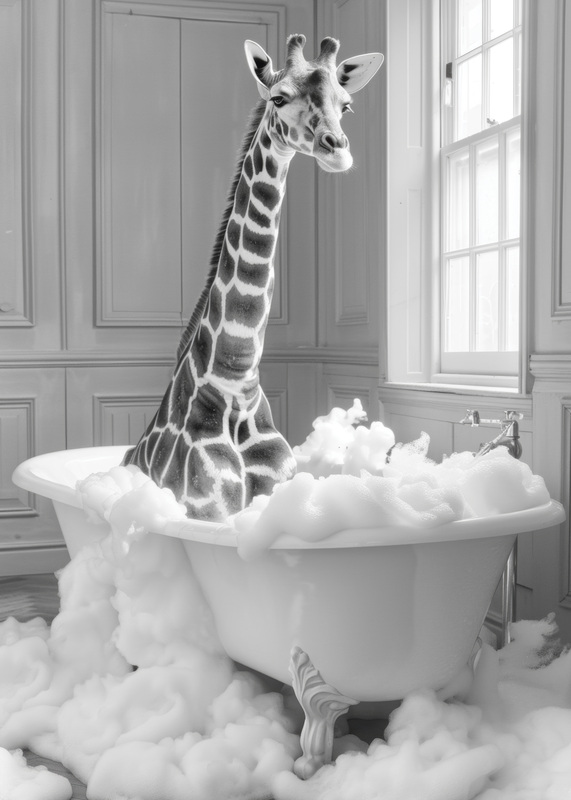 Poster : Girafe dans la baignoire pleine de mousse