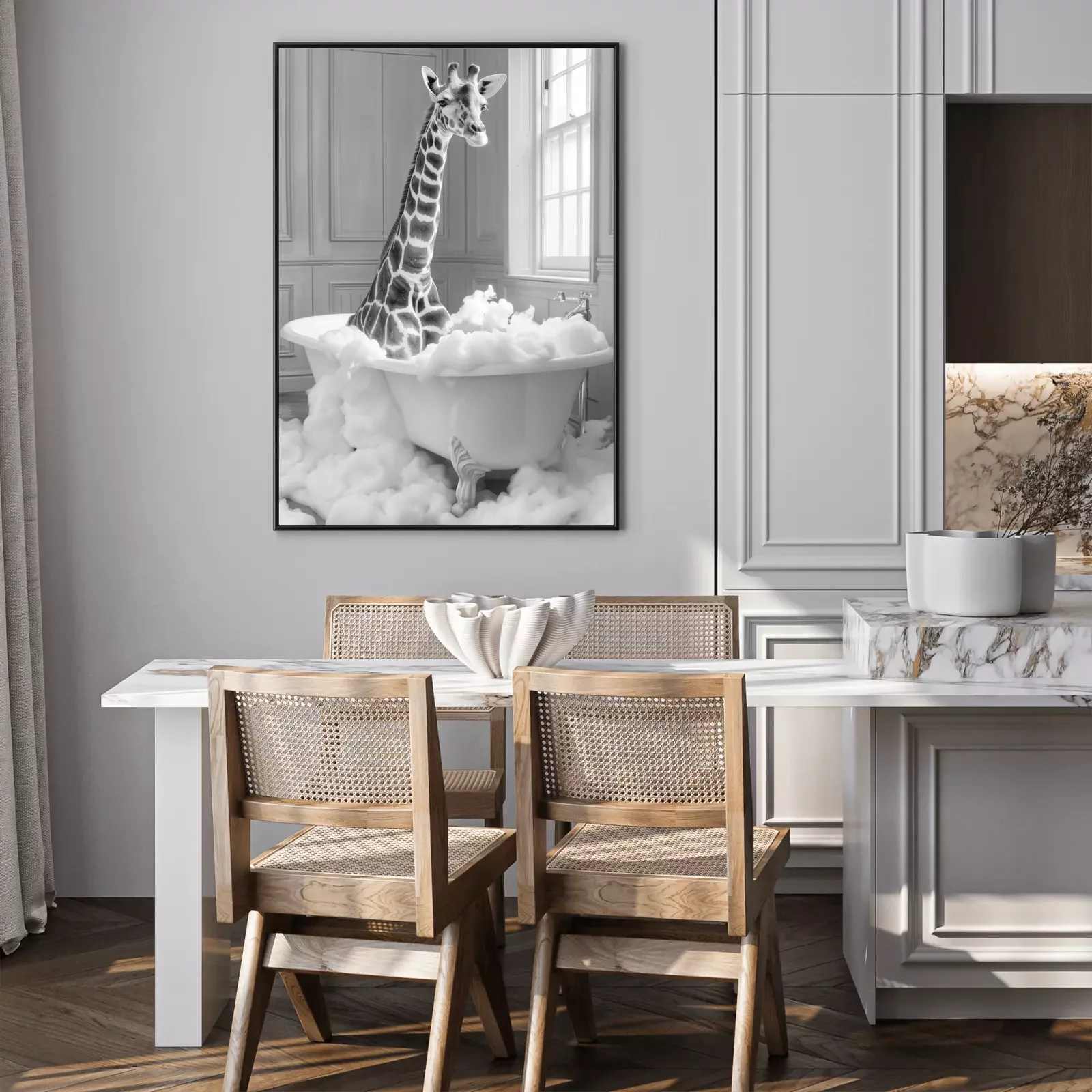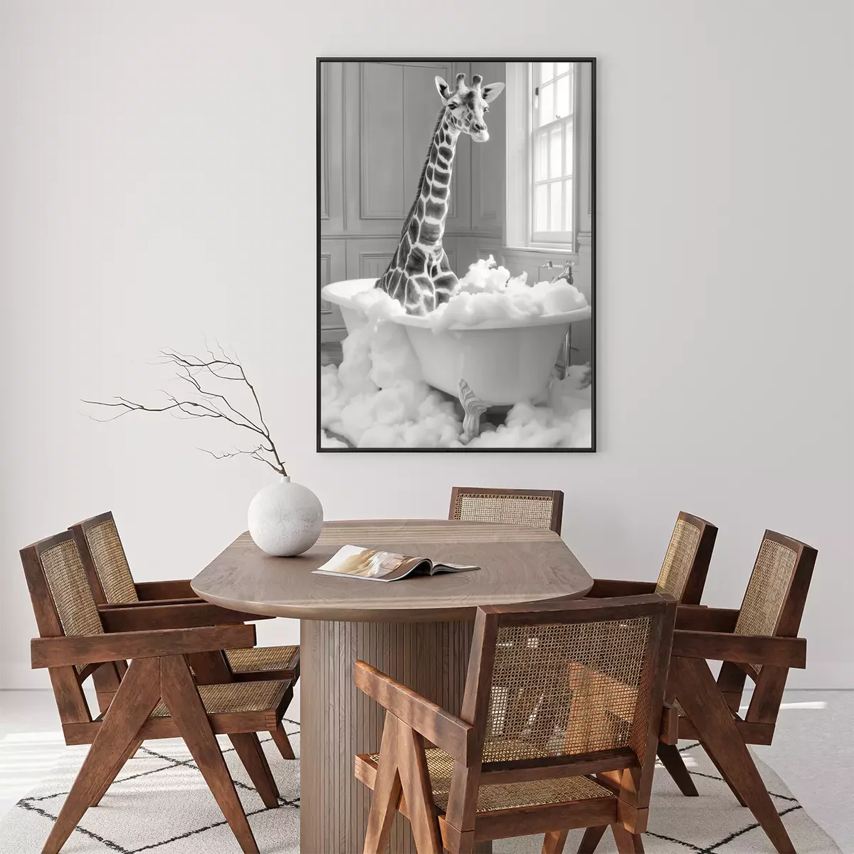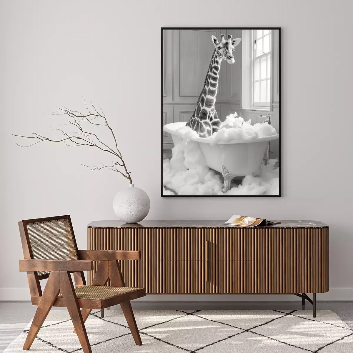 Poster : Girafe dans la baignoire pleine de mousse