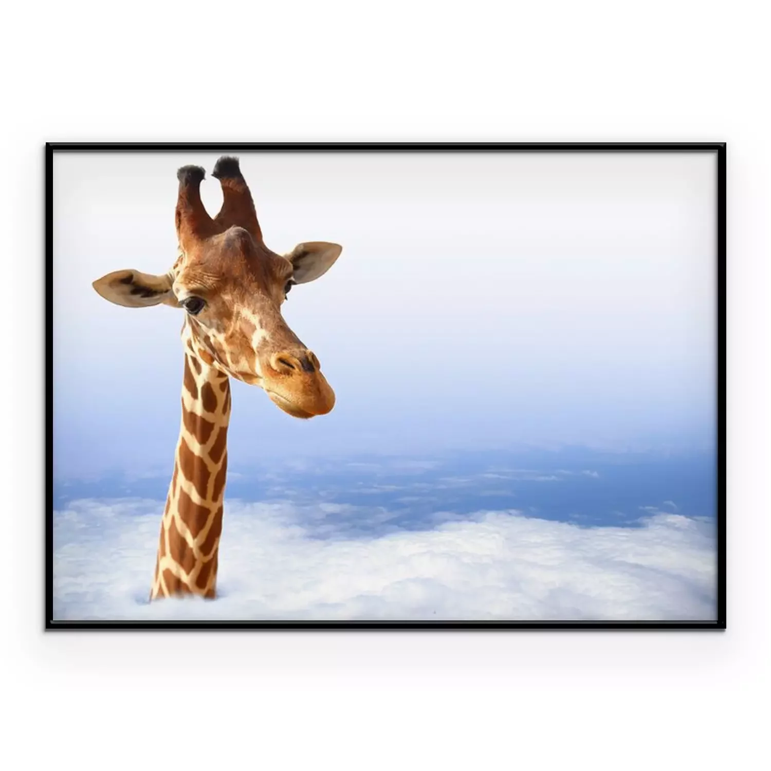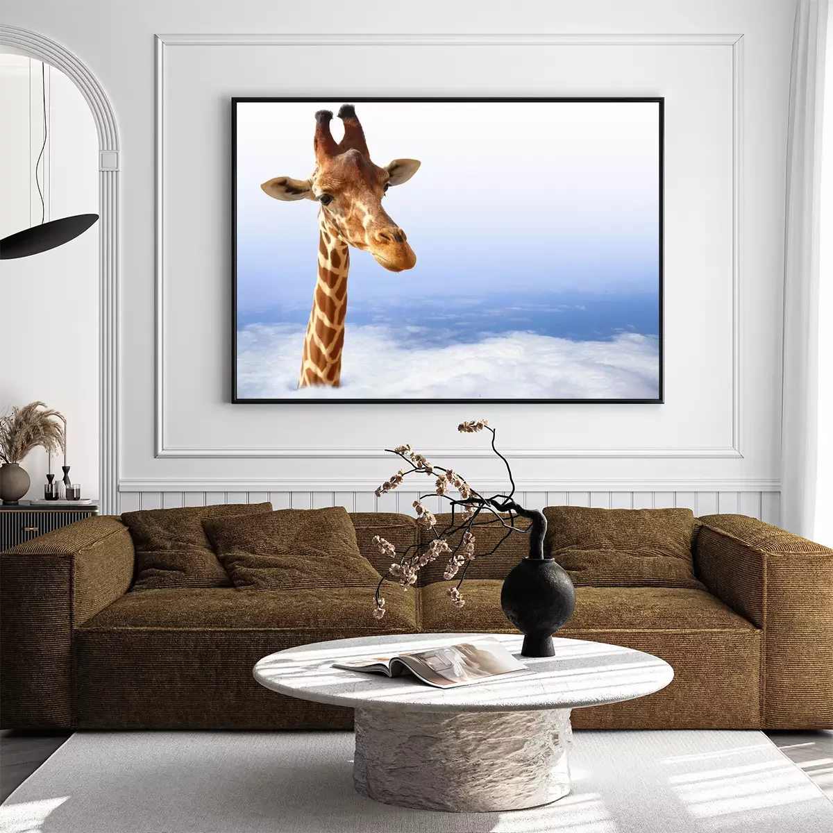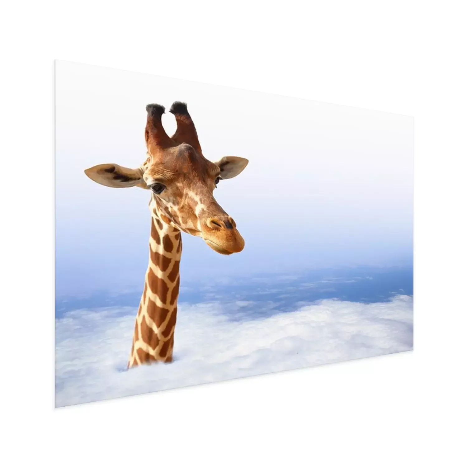 Girafe drôle avec des lunettes de soleil sortant des nuages