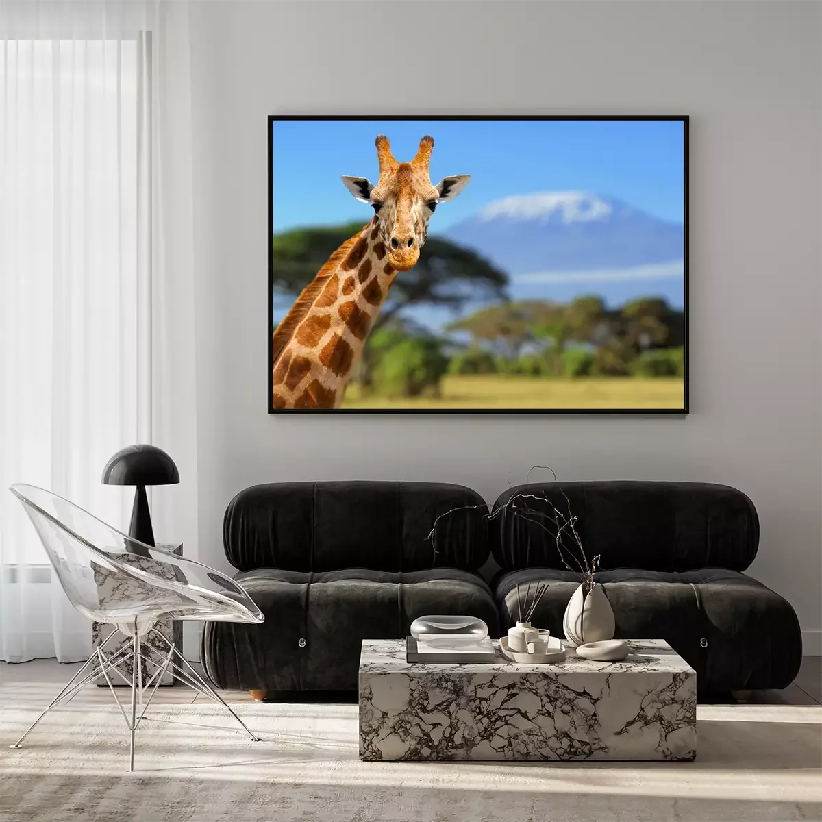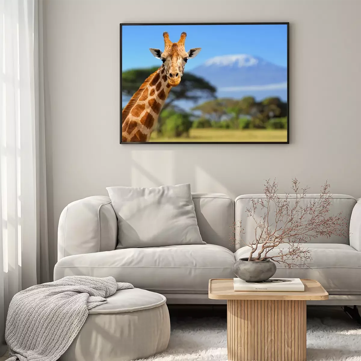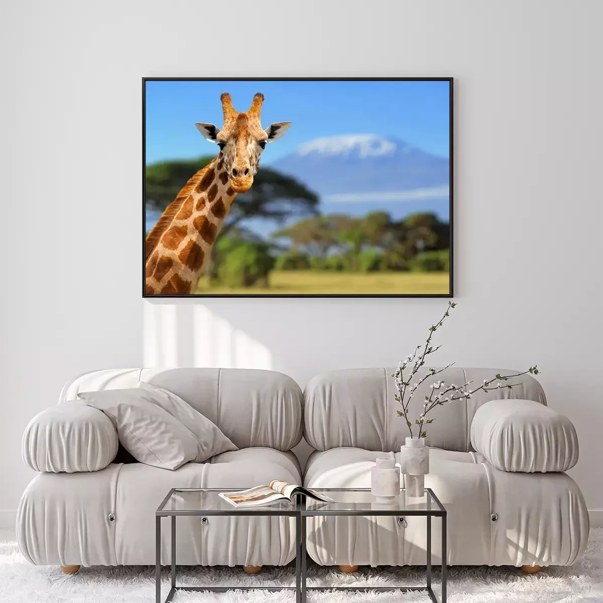 Poster : Girafe en face de la montagne du Kilimandjaro