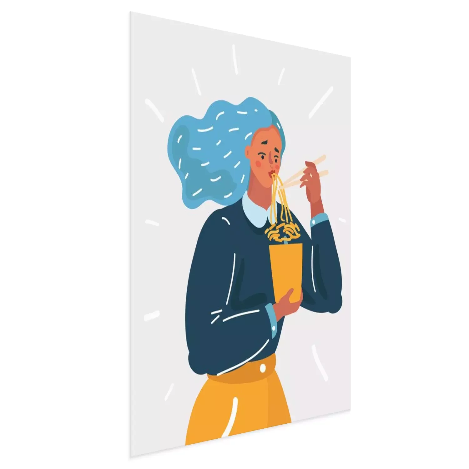 Poster  Girl enjoying her ramen noodle with chopstick.