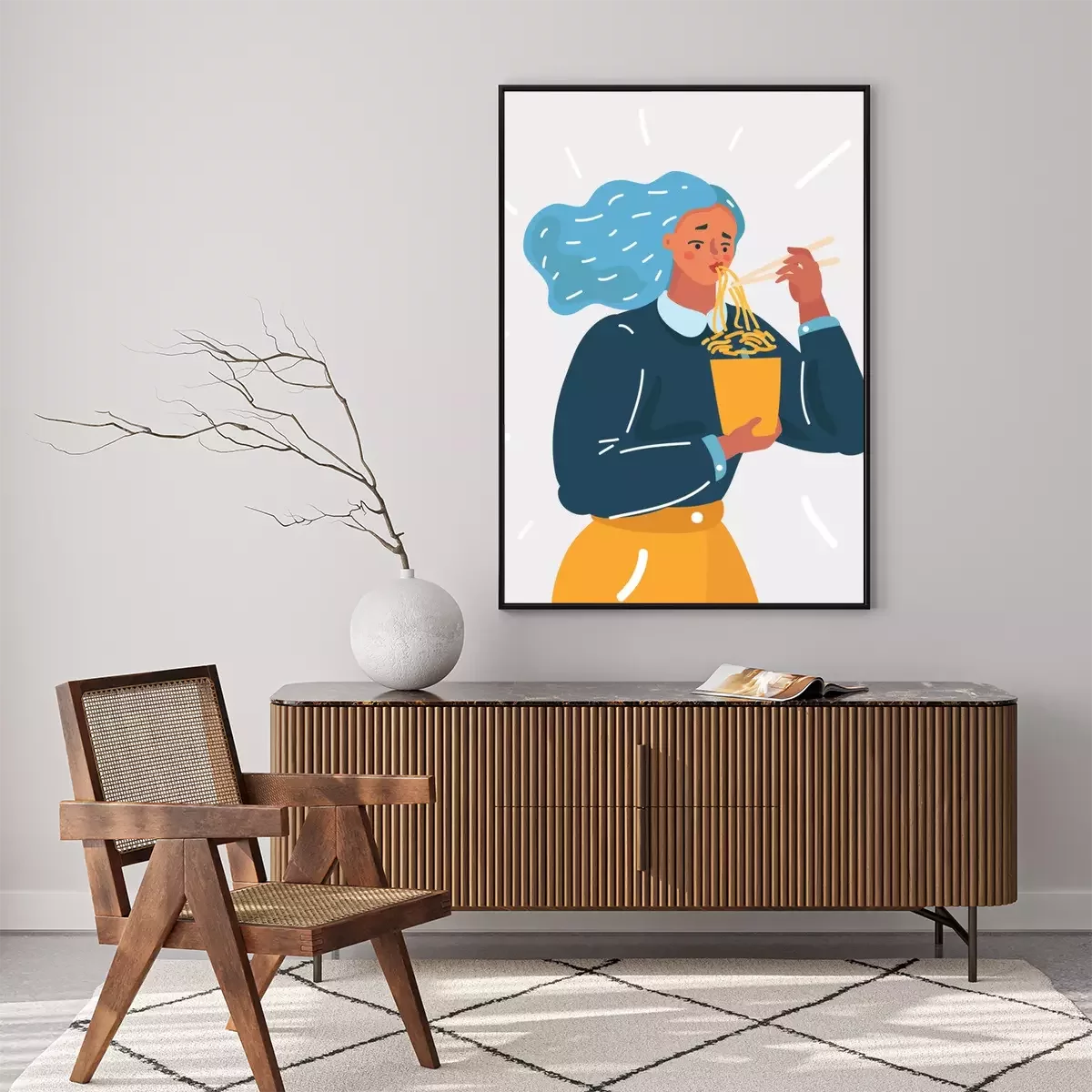 Poster : Girl enjoying her ramen noodle with chopstick.