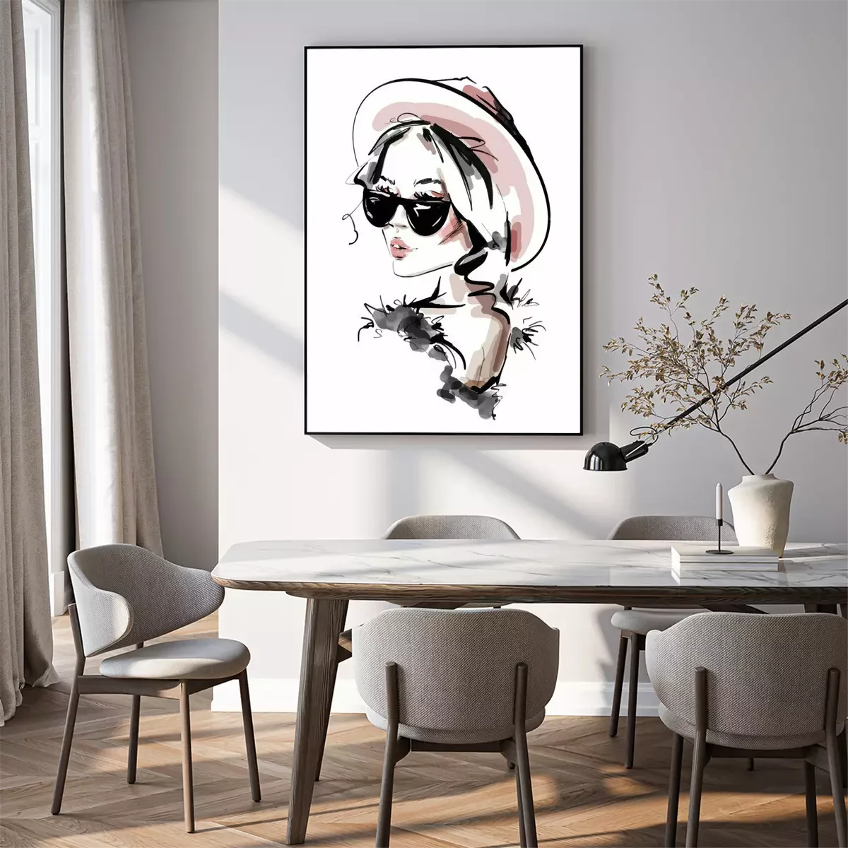 Belle jeune femme avec un verre de vin. Femme mignonne dessinés à la main en vêtements de mode. Dame blonde élégante cheveux potable. Esquisser.