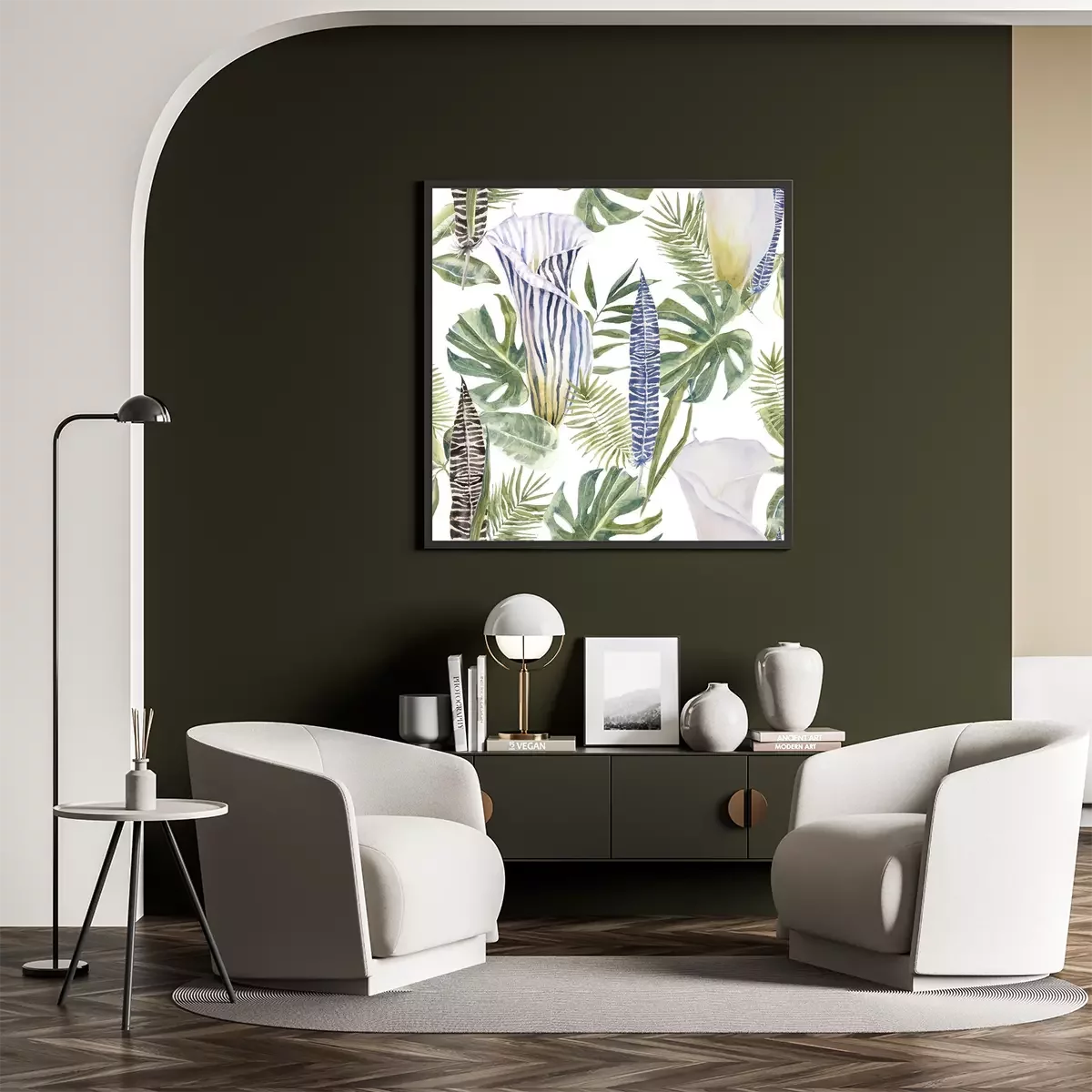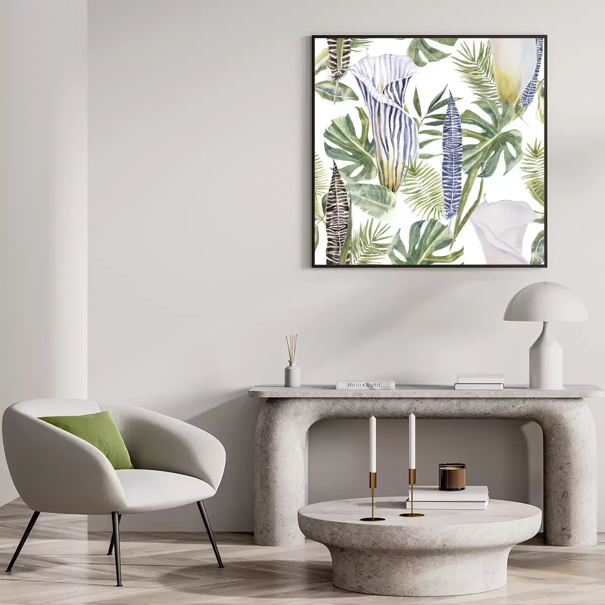 Poster : Gobelets nature colorée de fleurs sur monstera