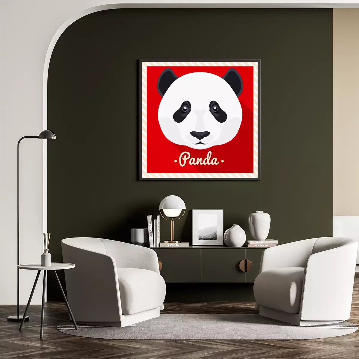 Poster : Grand panda sur fond rouge