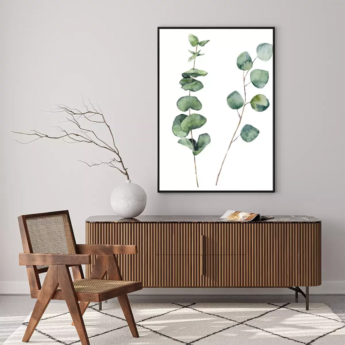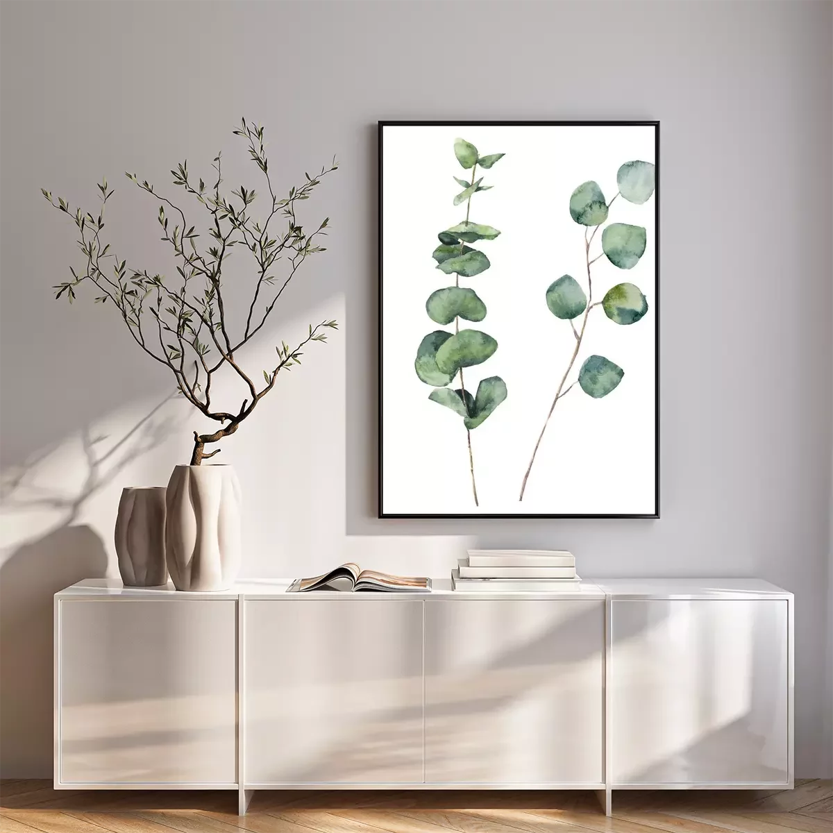 Poster : Graphique botanique avec des feuilles vertes d'eucalyptus