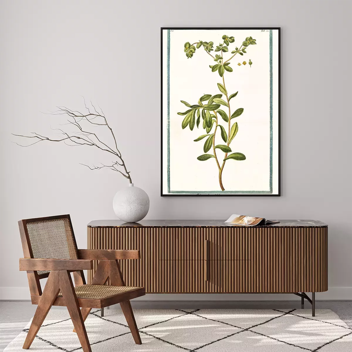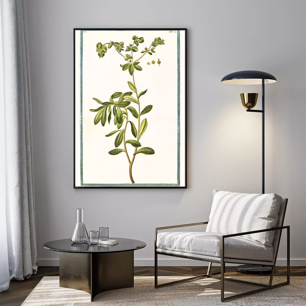 Gravure d'une plante exotique dans un cadre vert
