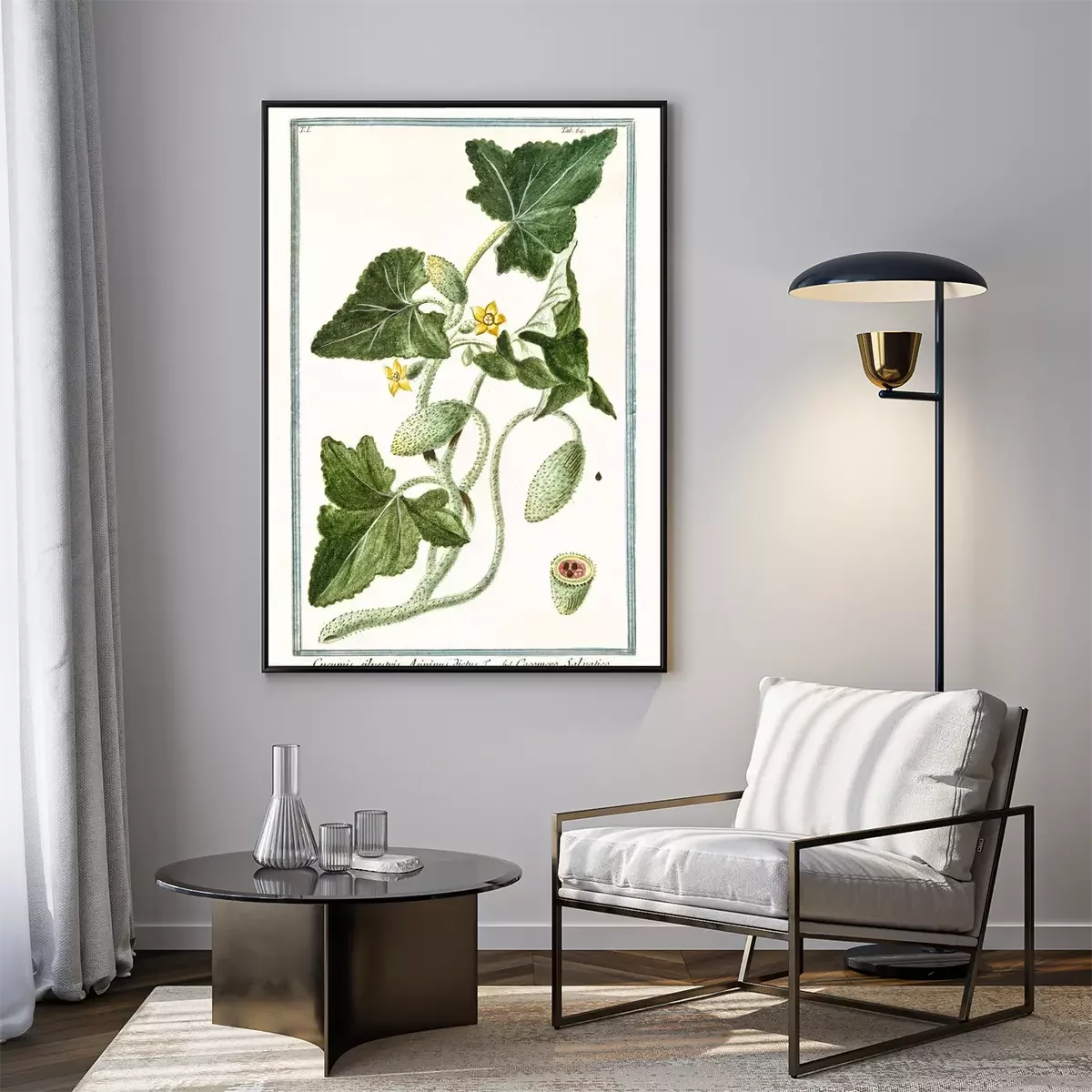 Gravure d'une plante exotique dans un cadre vert