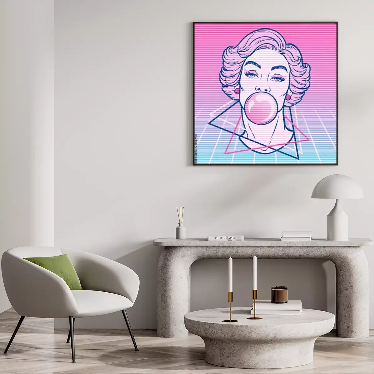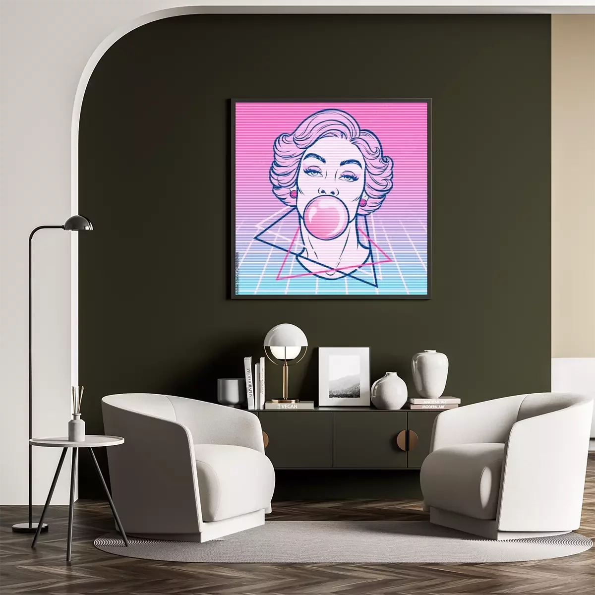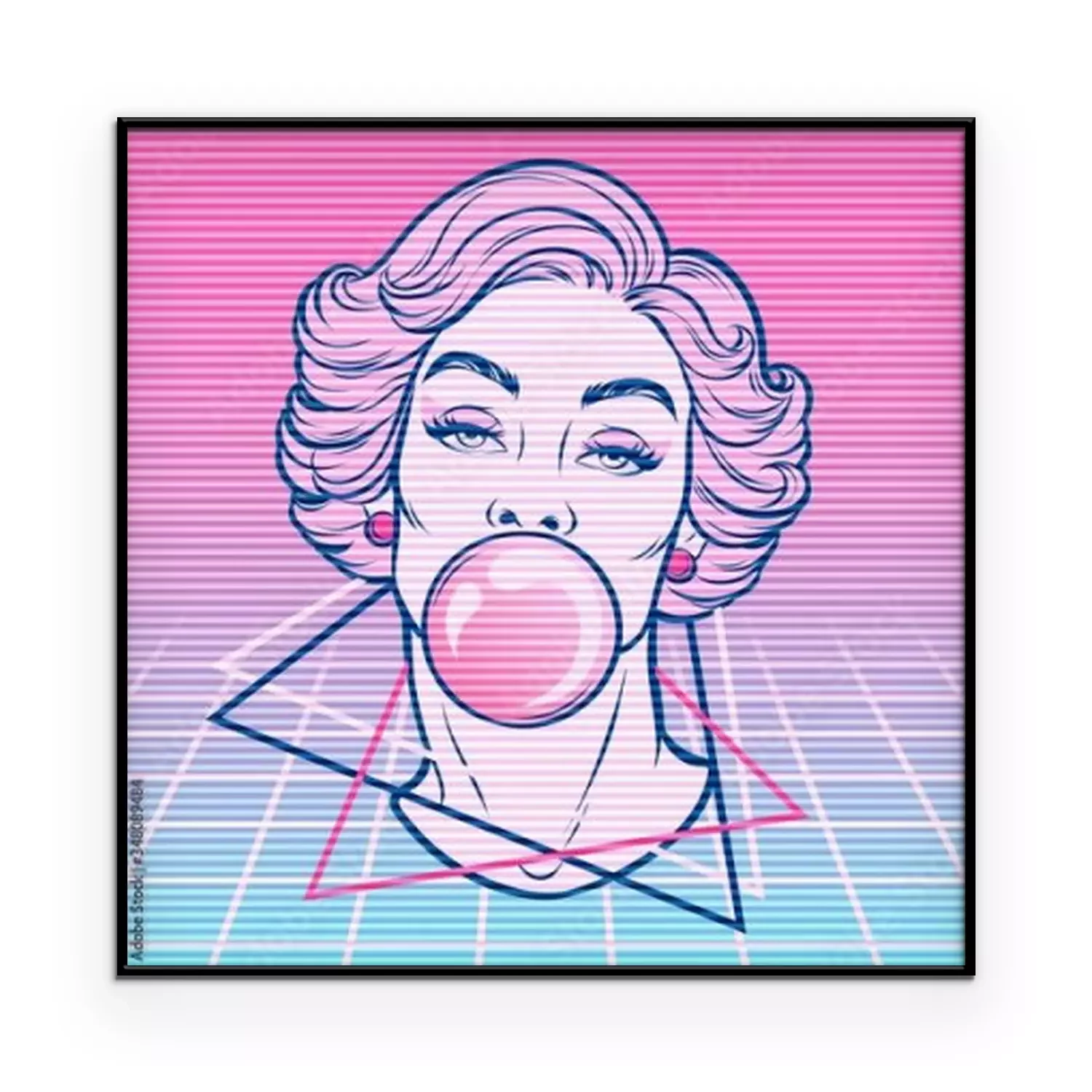 Poster  Graphique pop art d'une femme avec un chewing-gum