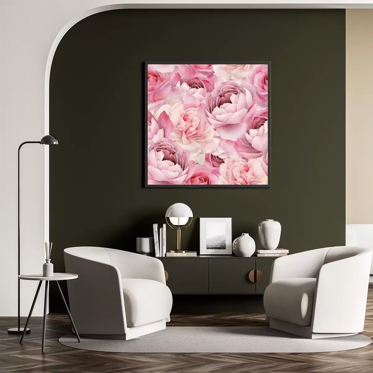 Seamless floral pattern with flowers on light background, watercolor. Template design for textiles, interior, clothes, wallpaper. Botanical art