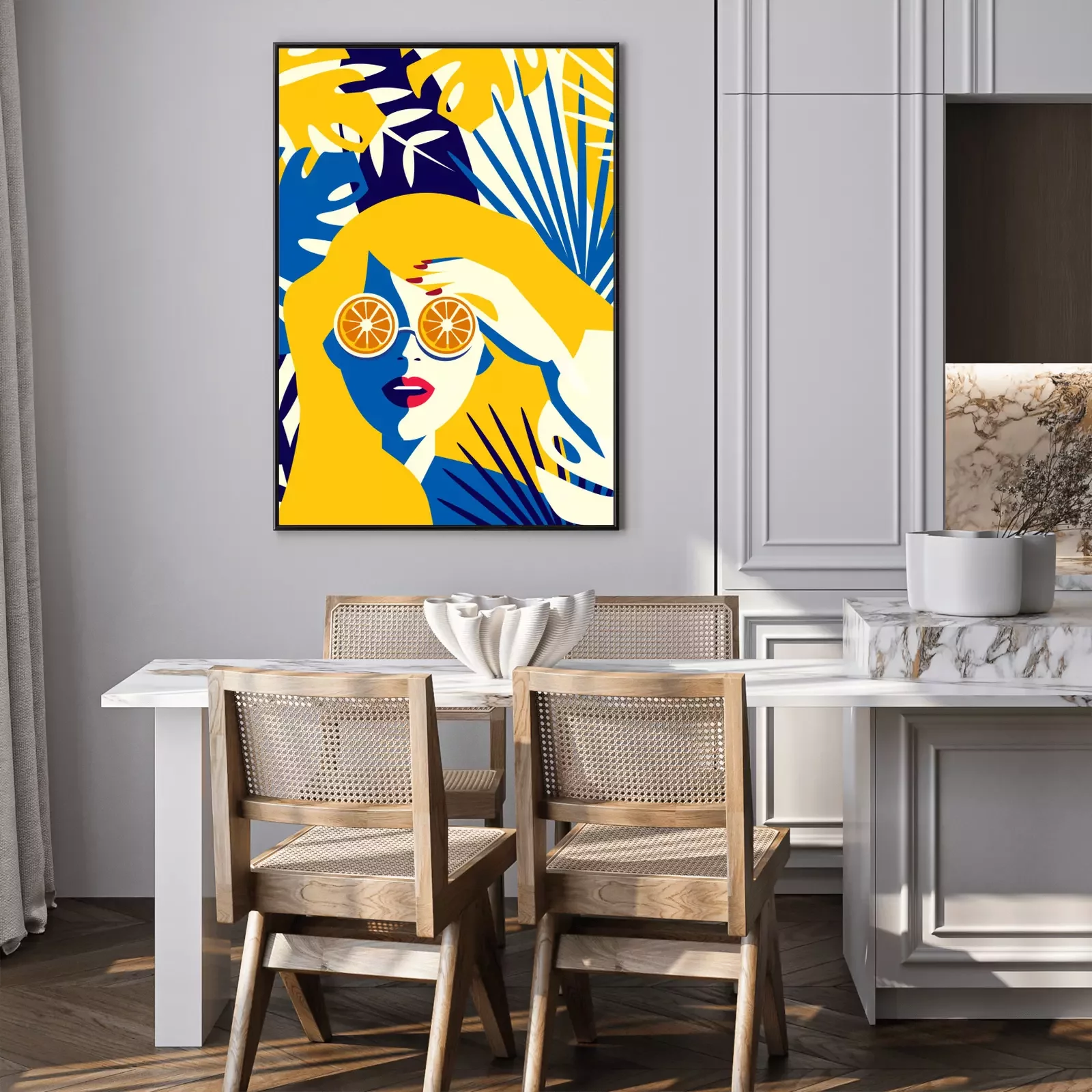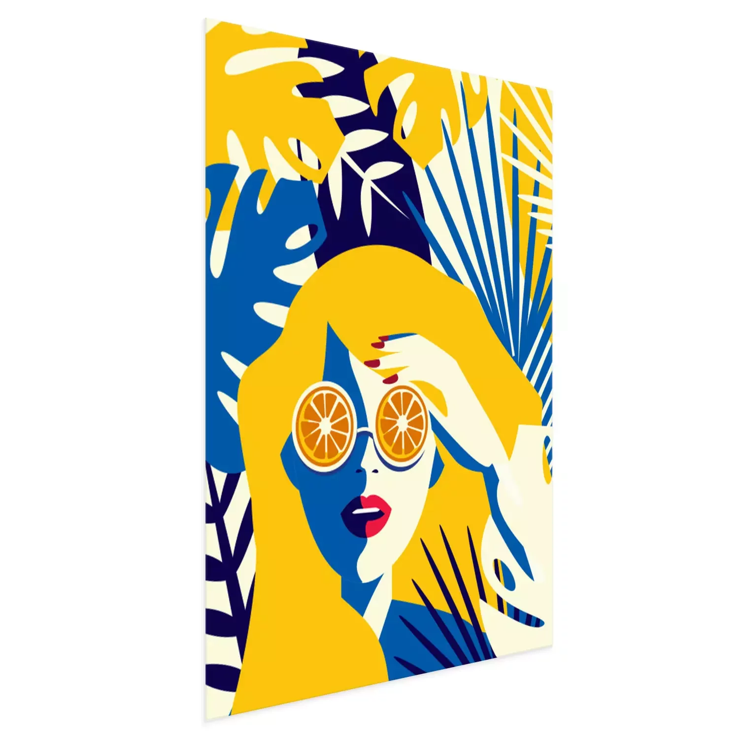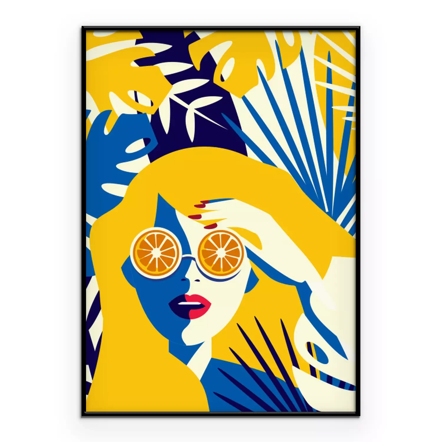 Poster  Graphiques en couleur avec une femme à lunettes orange