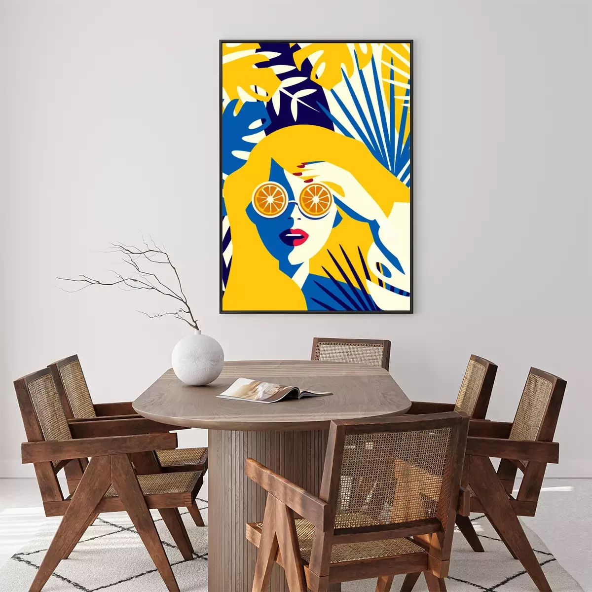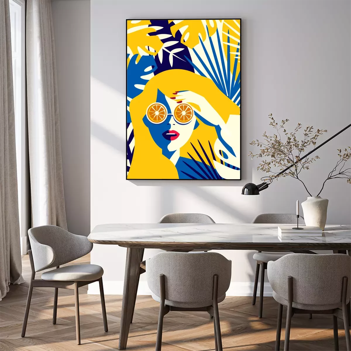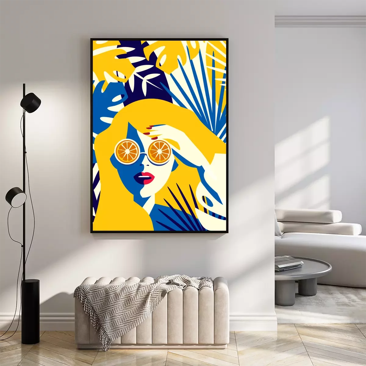 Poster  Graphiques en couleur avec une femme à lunettes orange