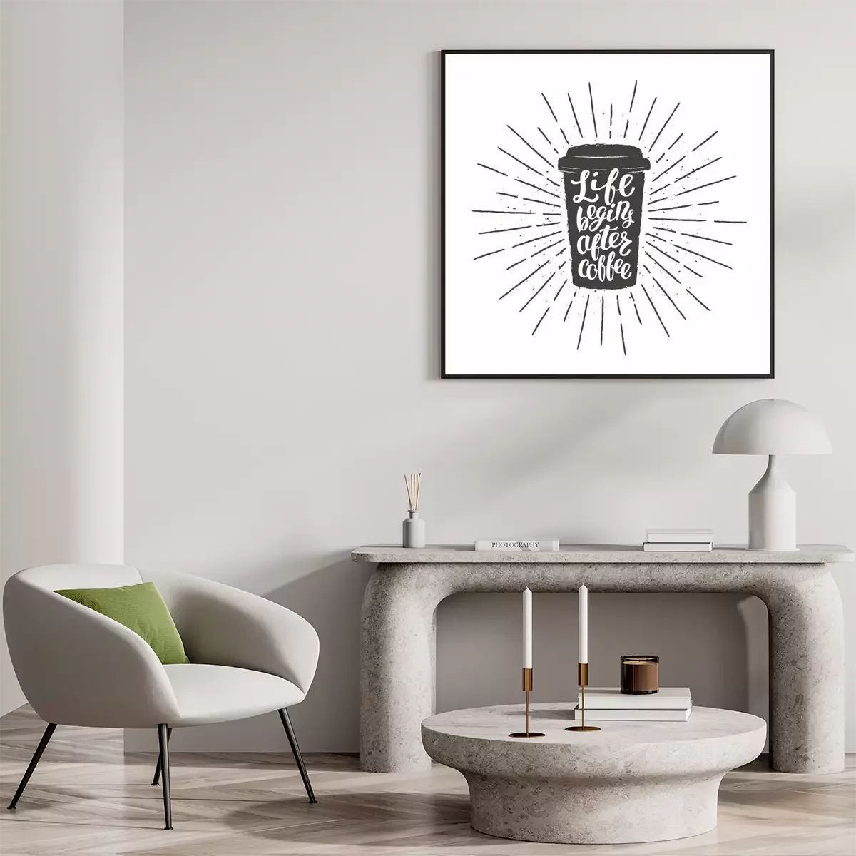 Poster : Graphiques en noir et blanc avec café et lettrage