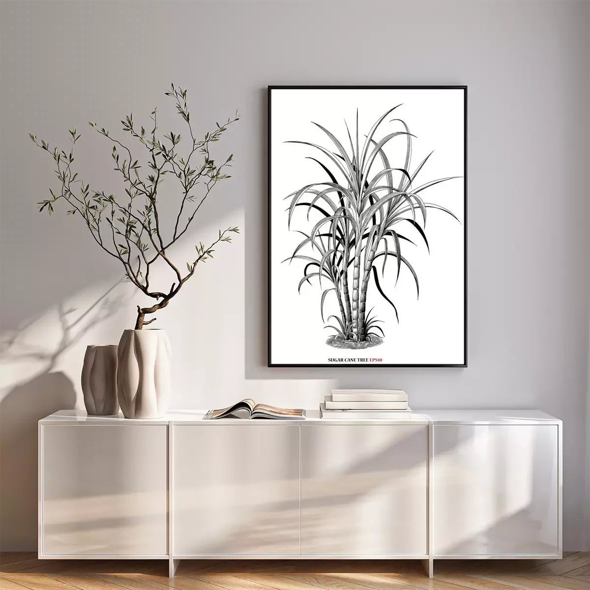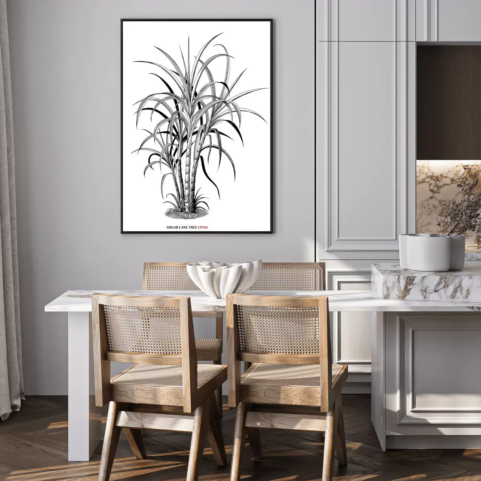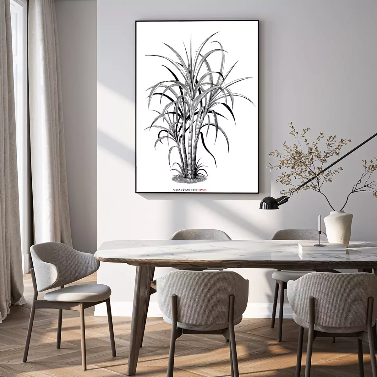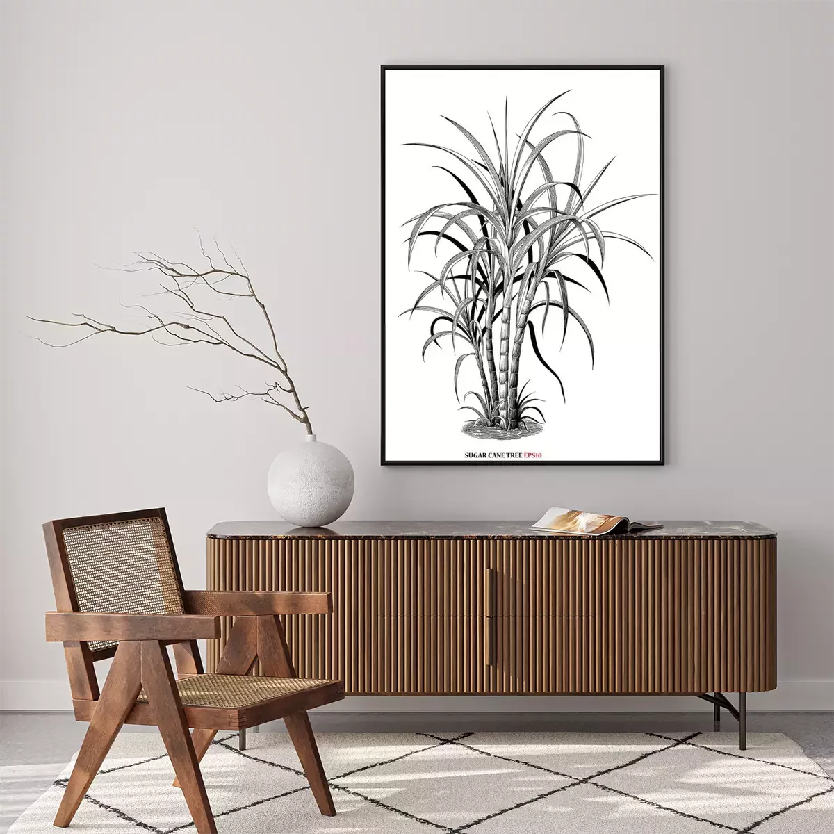 Poster : Graphisme botanique avec une touffe de canne à sucre