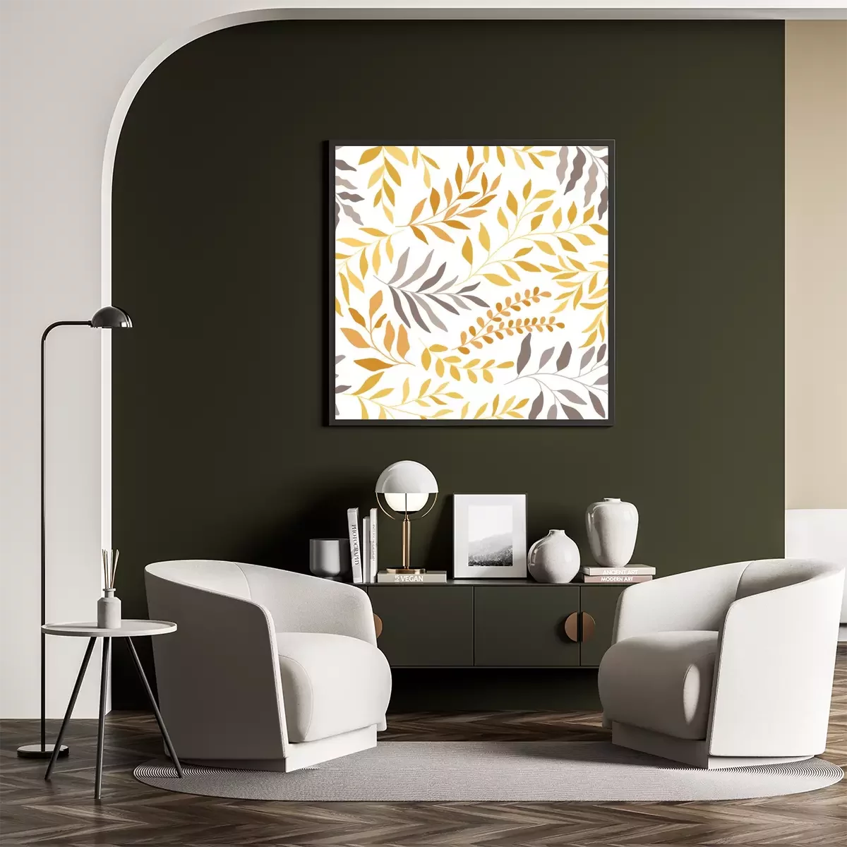 Poster : Graphismes de plantes dans des tons jaune-gris