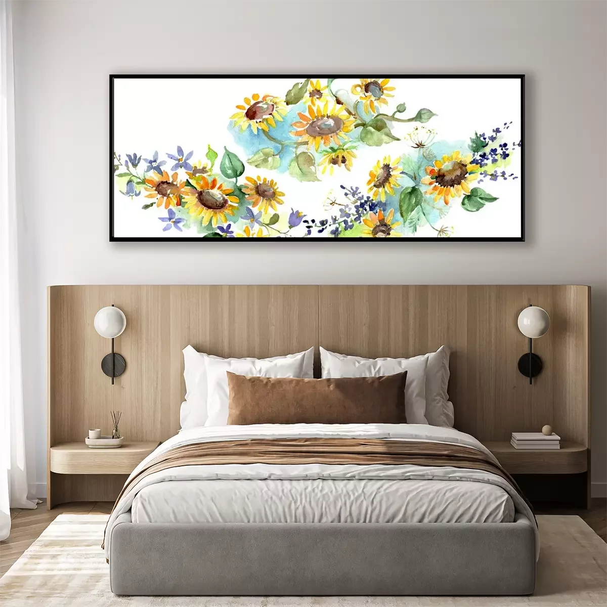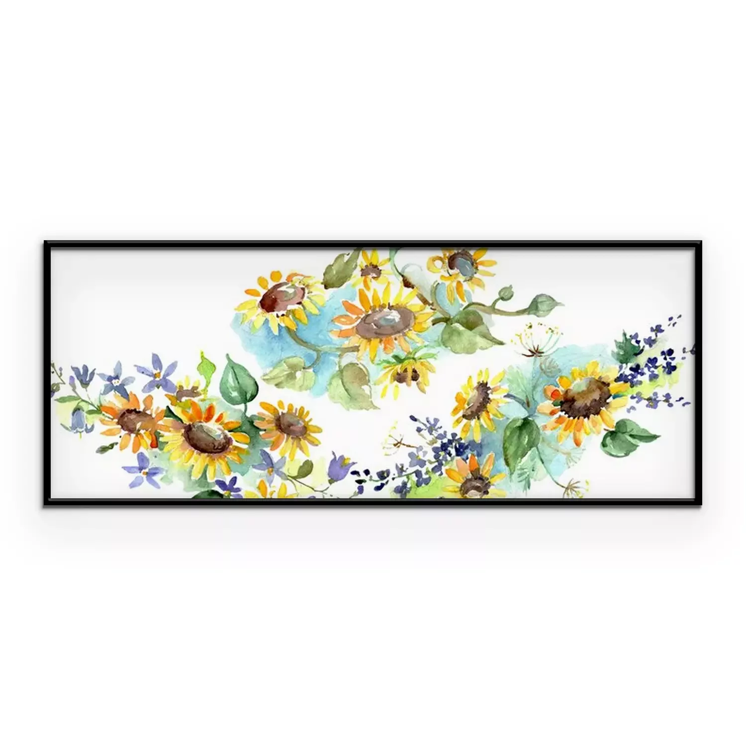 Tournesols aquarelles sur ombrage bleu