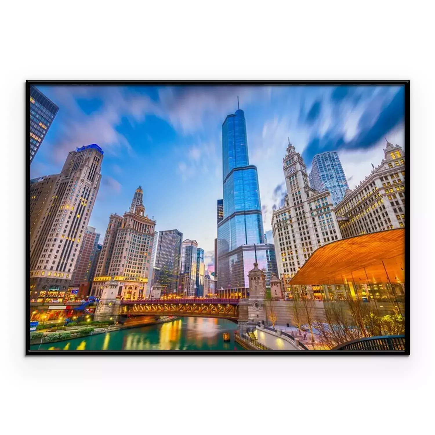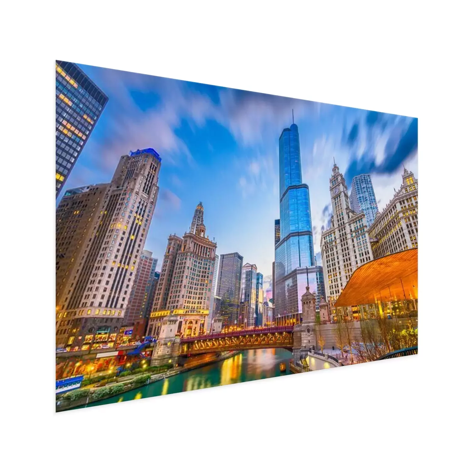 Poster : Gratte-ciel et pont au coucher du soleil