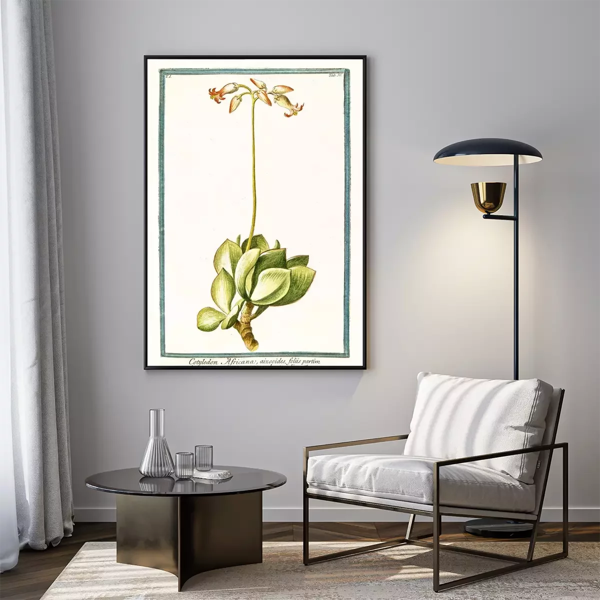 Poster : Gravure d'une plante exotique dans un cadre vert
