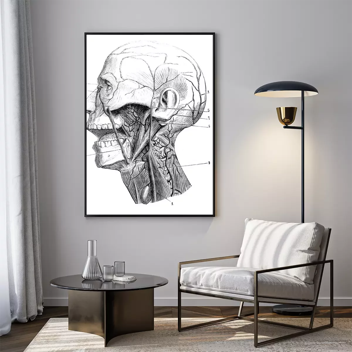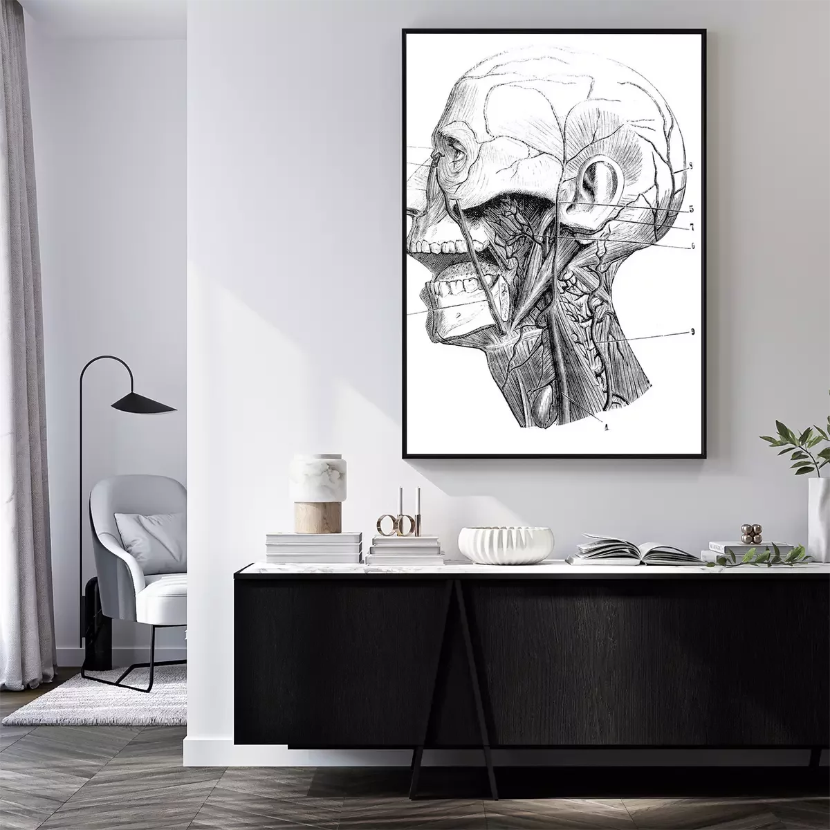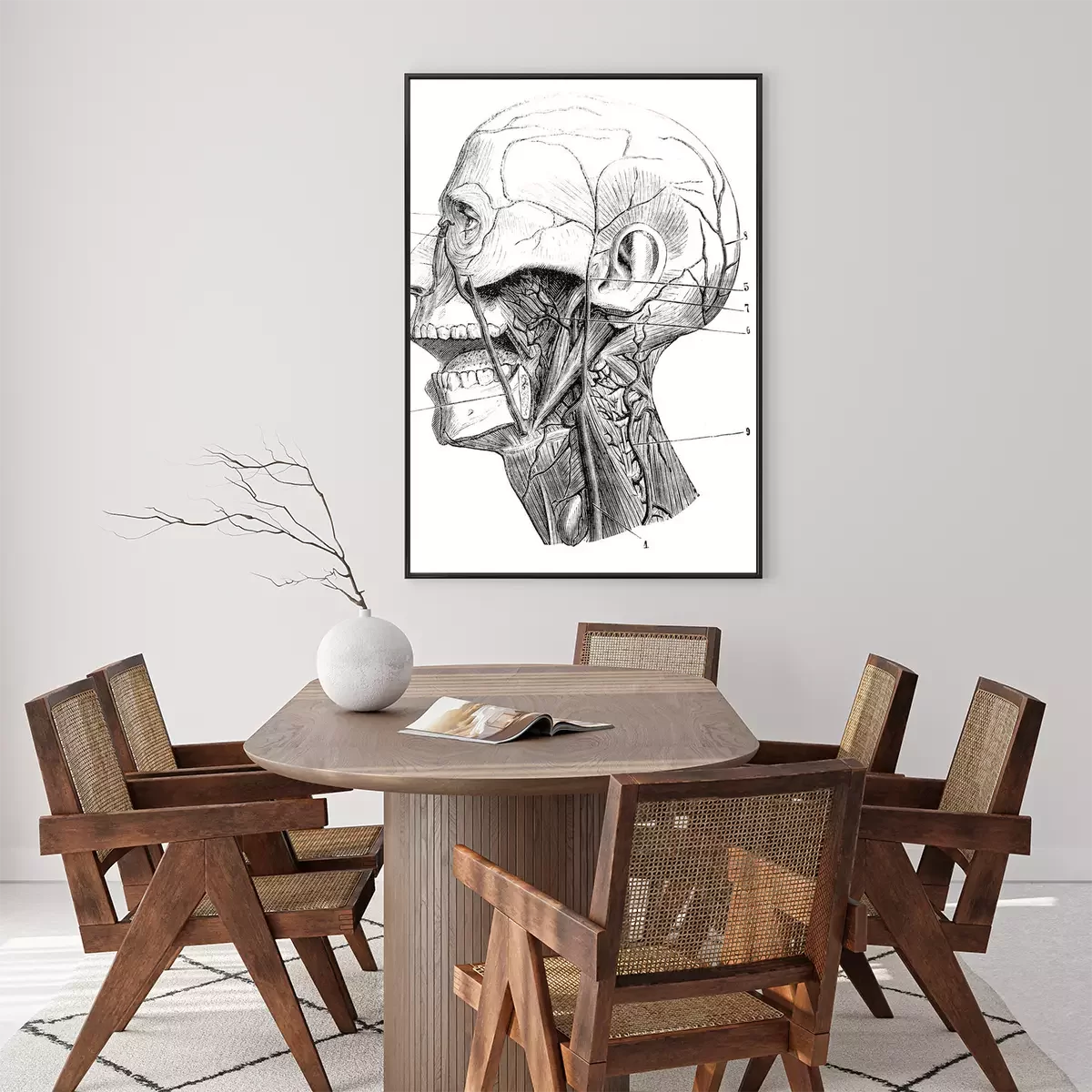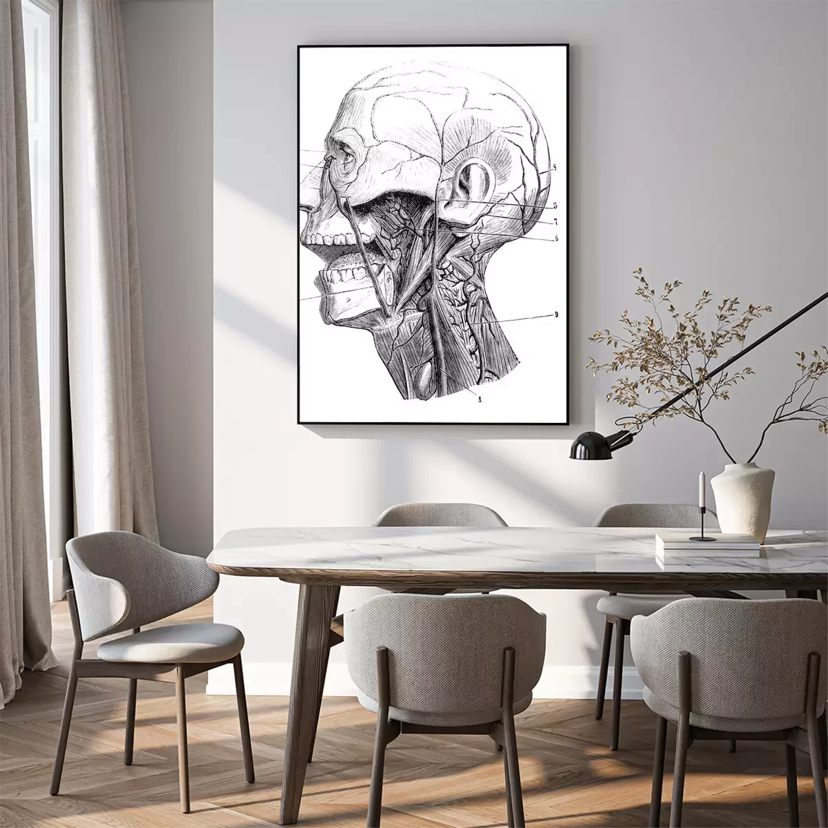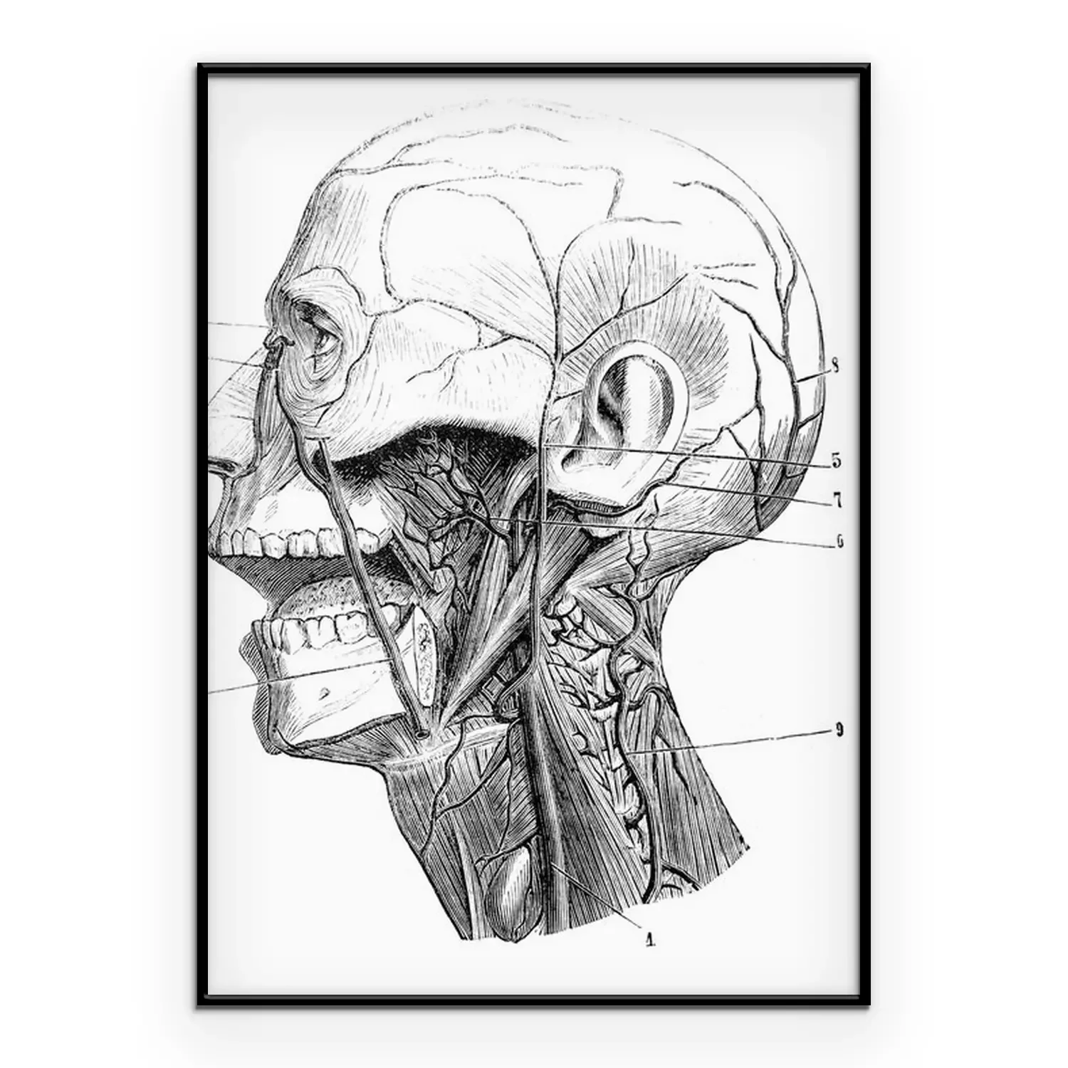 Poster : Gravure d'une tête humaine avec des veines marquées