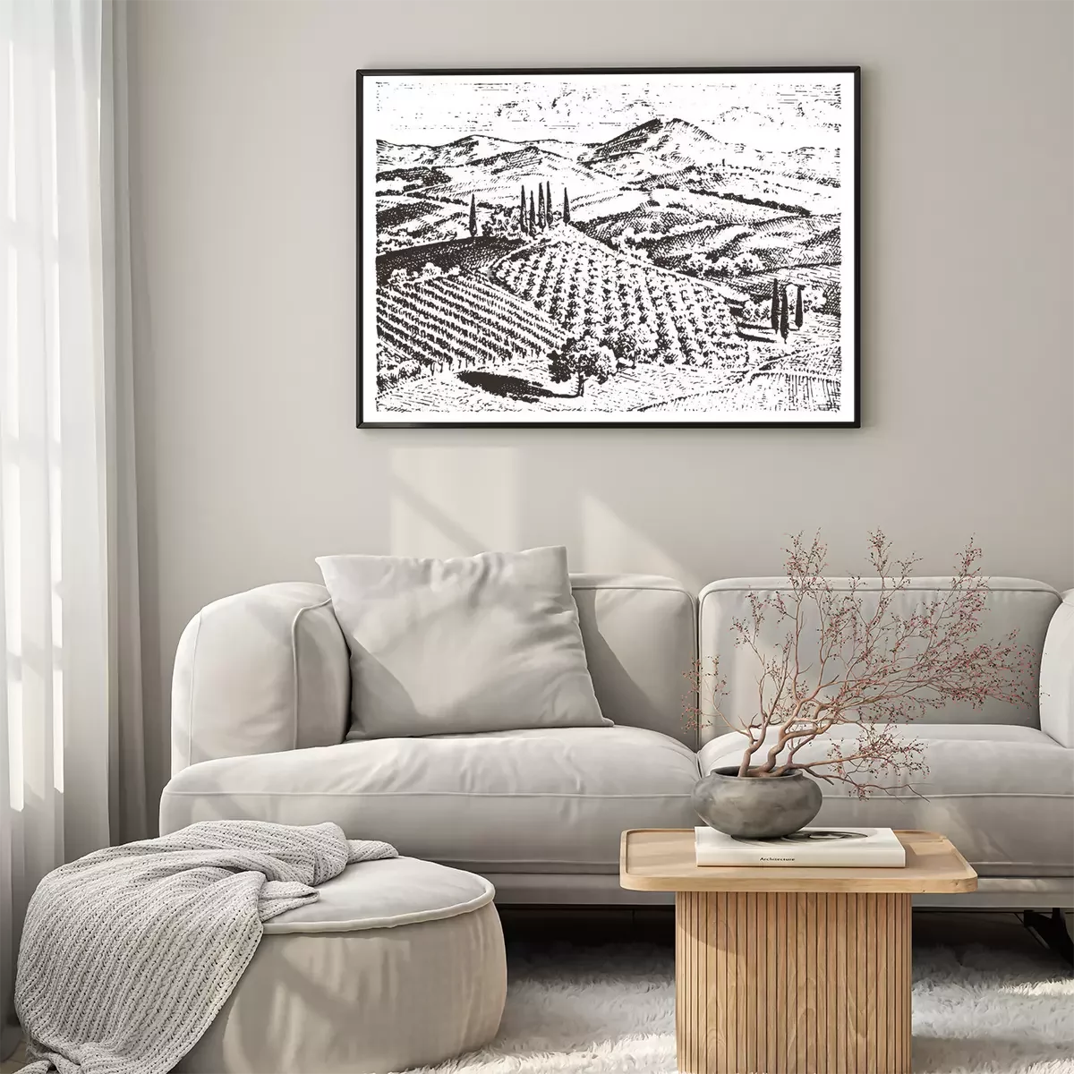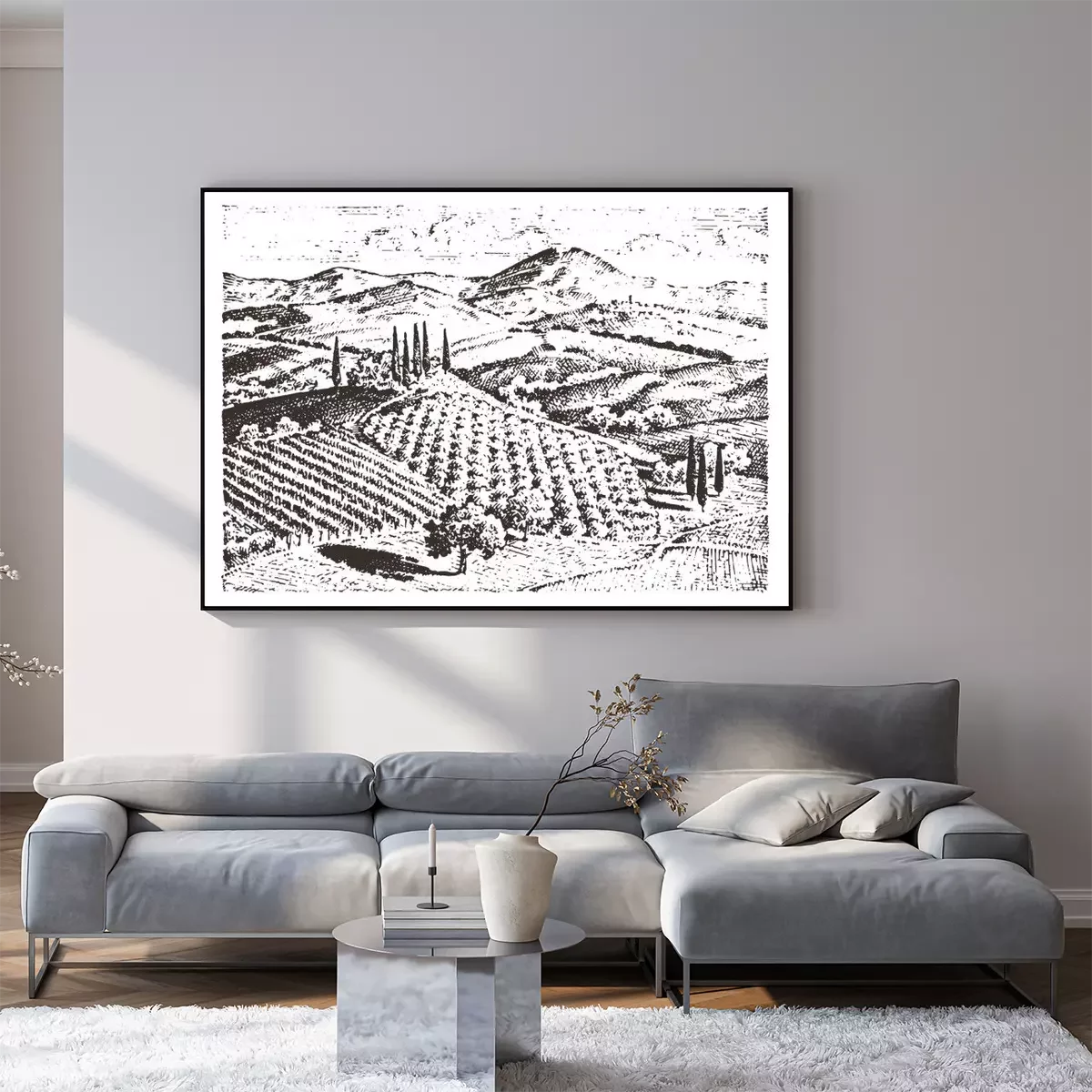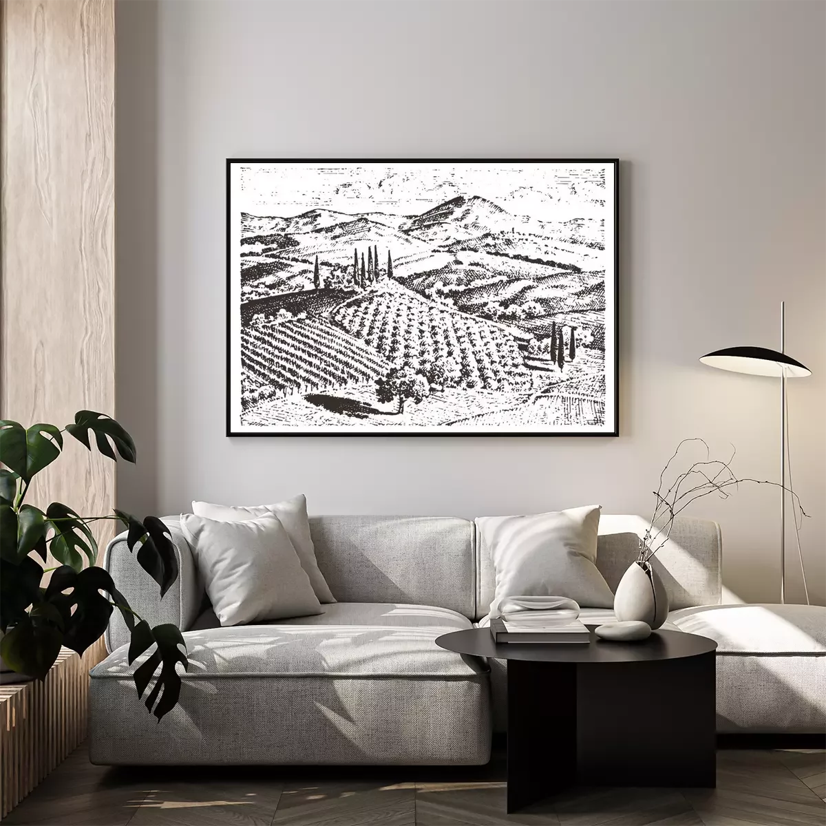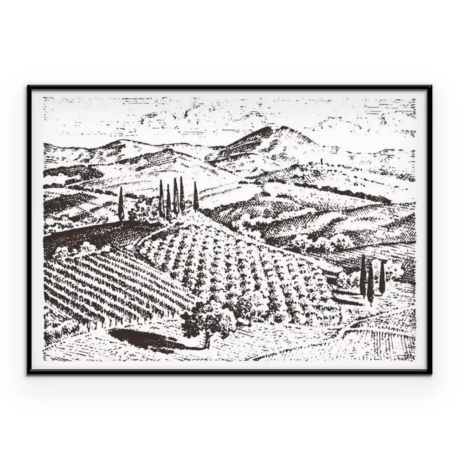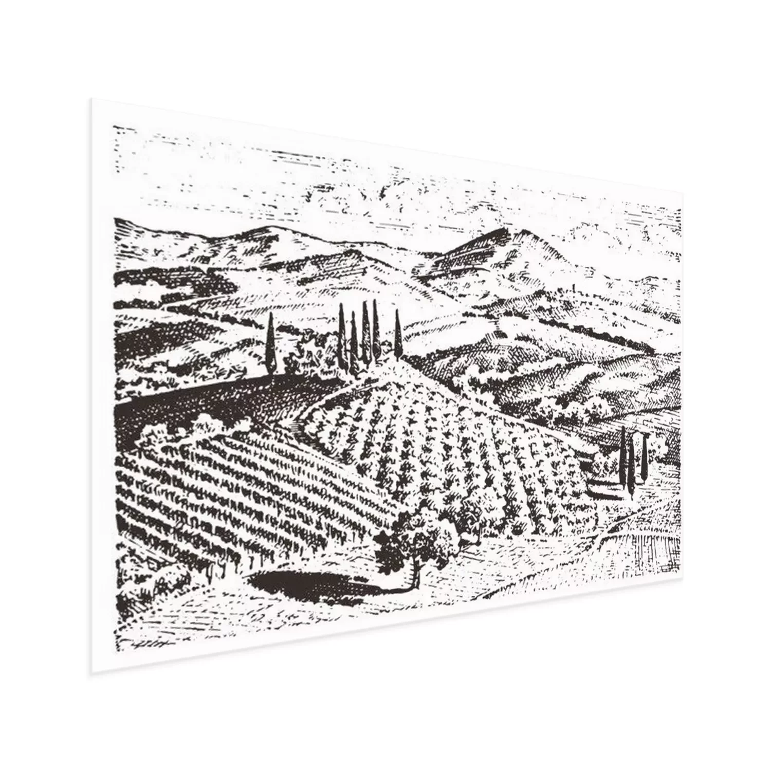 Dessin en noir et blanc de la Toscane