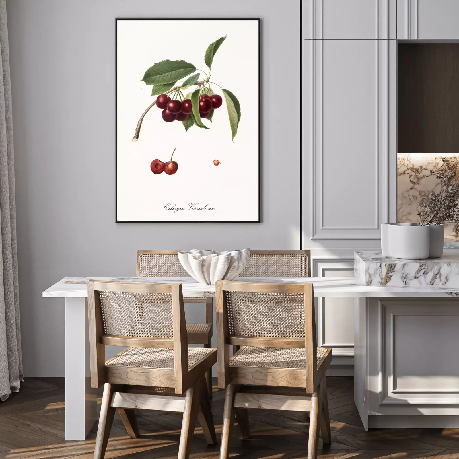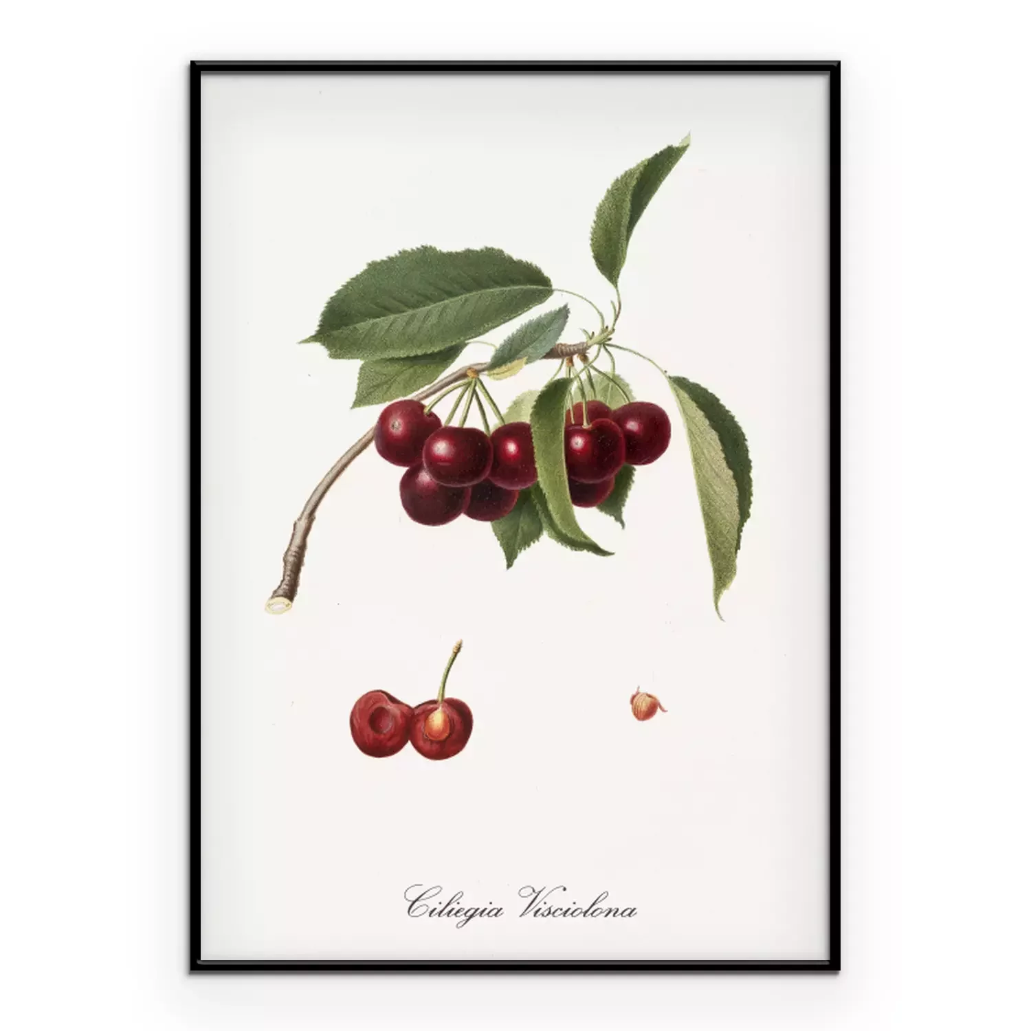 Poster  Gravure nature et botanique d'un bouquet de cerises