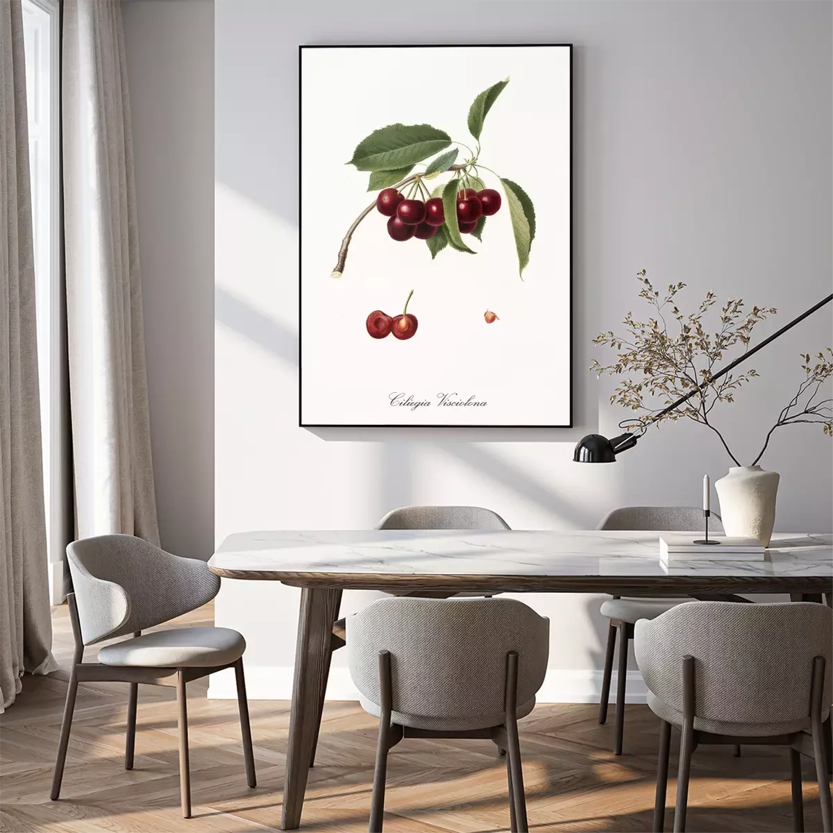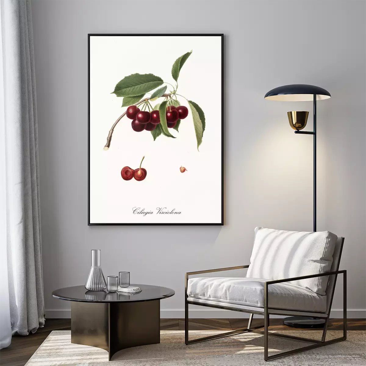 Poster : Gravure nature et botanique d'un bouquet de cerises