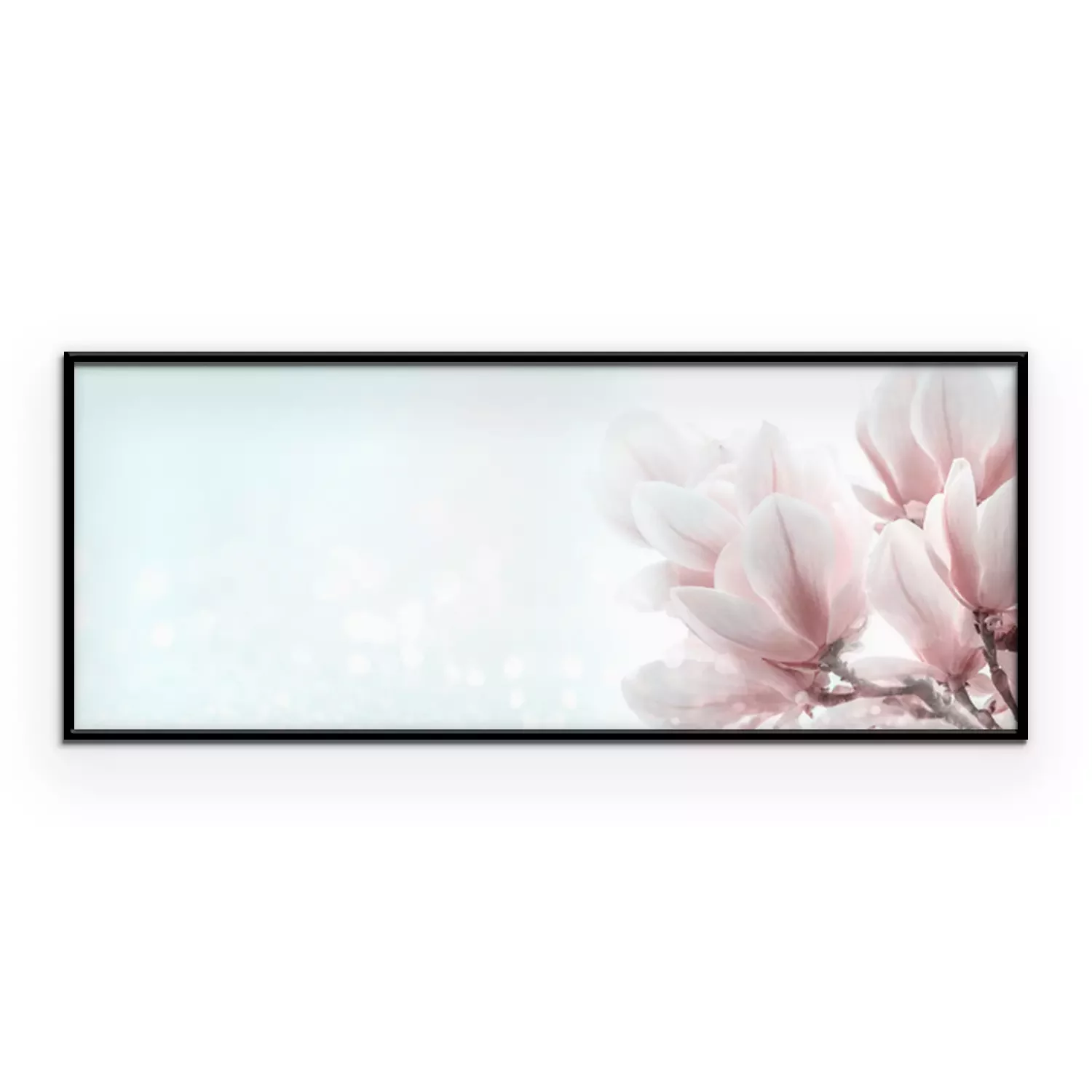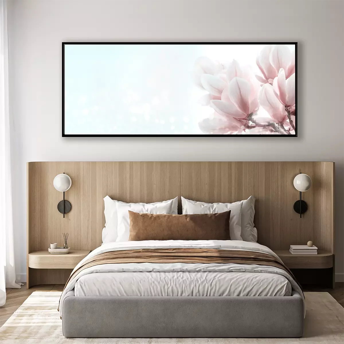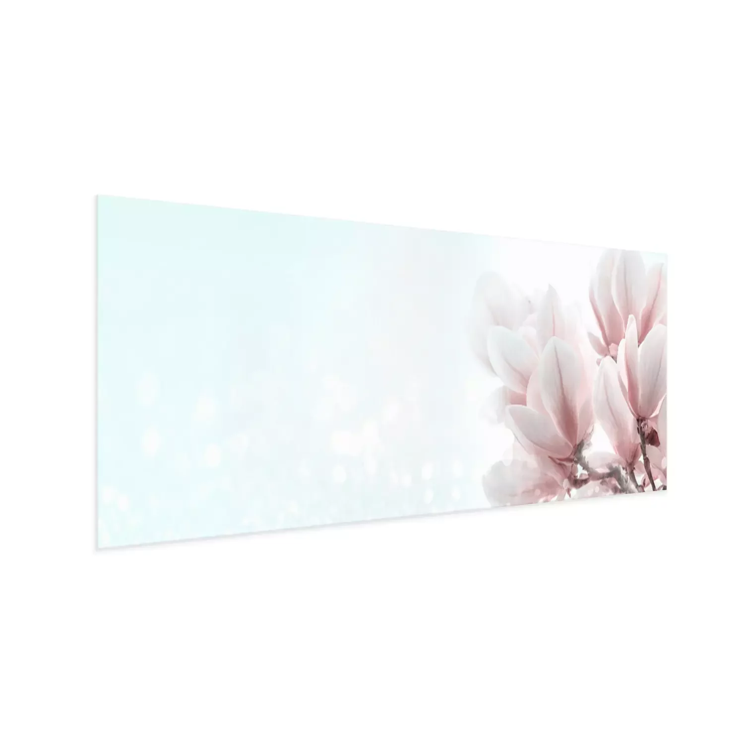 Closeup of blooming magnolia tree in spring on pastel bokeh background.