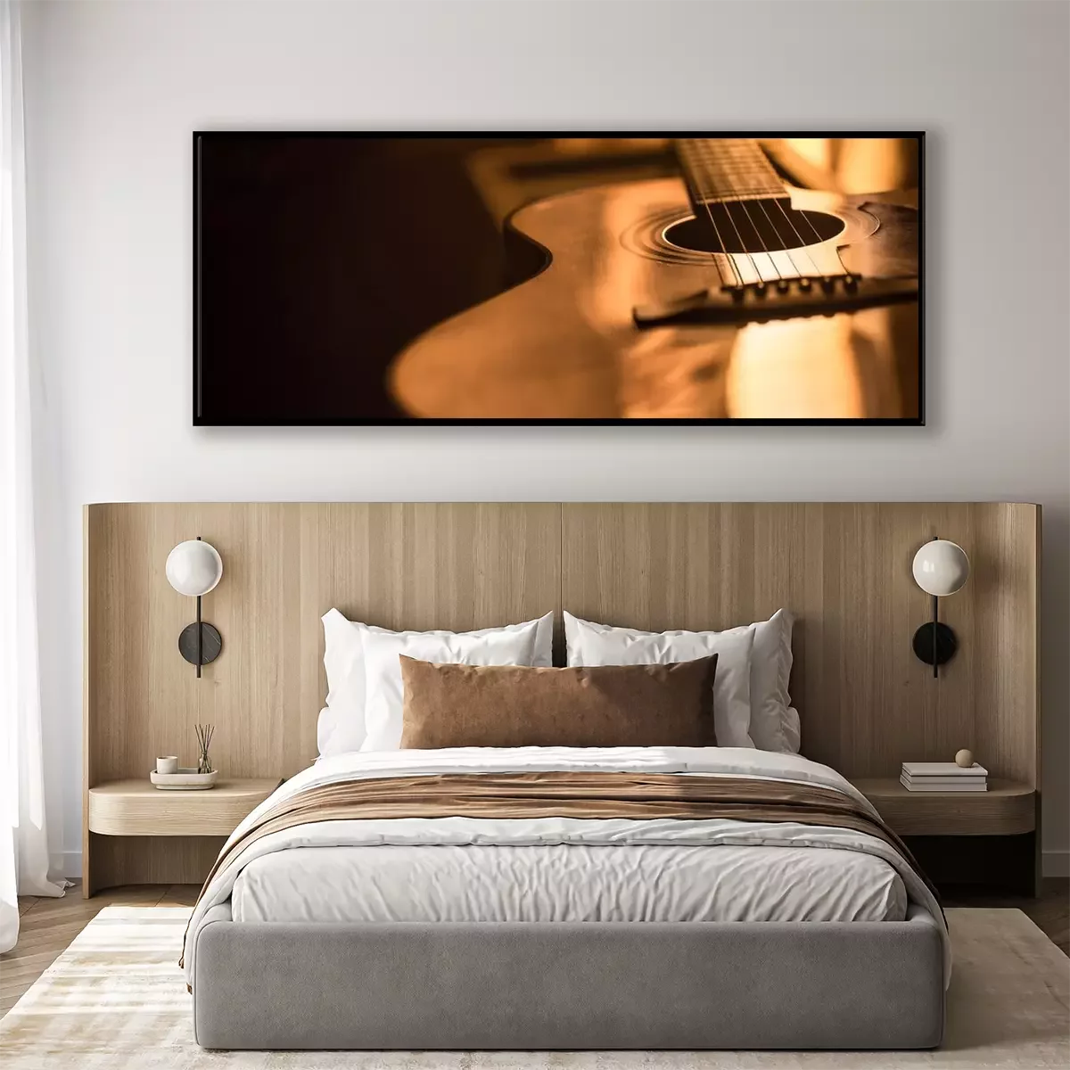 Poster  gros plan guitare acoustique sur un beau fond coloré
