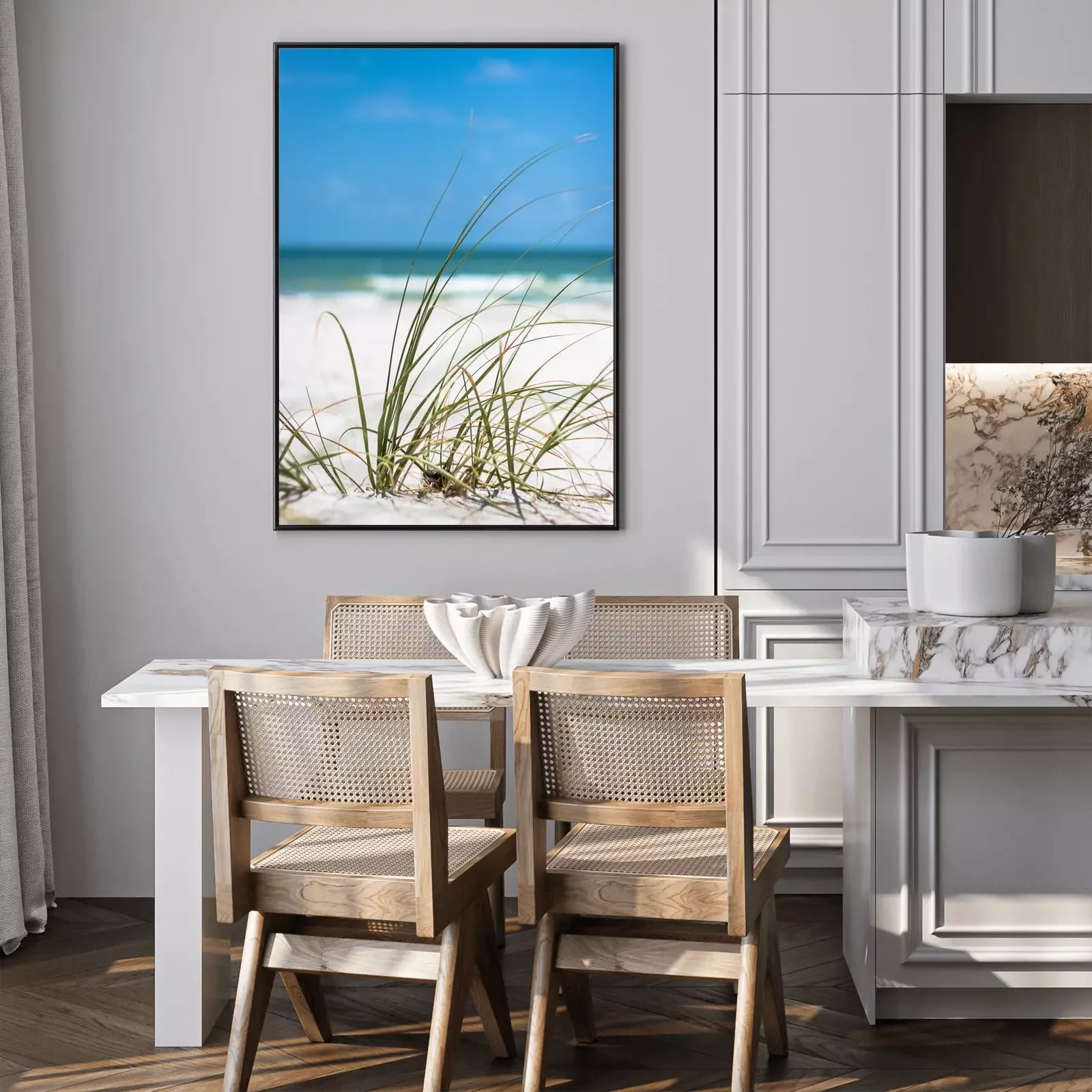 Poster  Gros plan, herbe, plage, sable