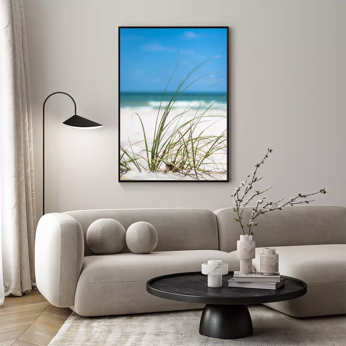 Poster : Gros plan, herbe, plage, sable