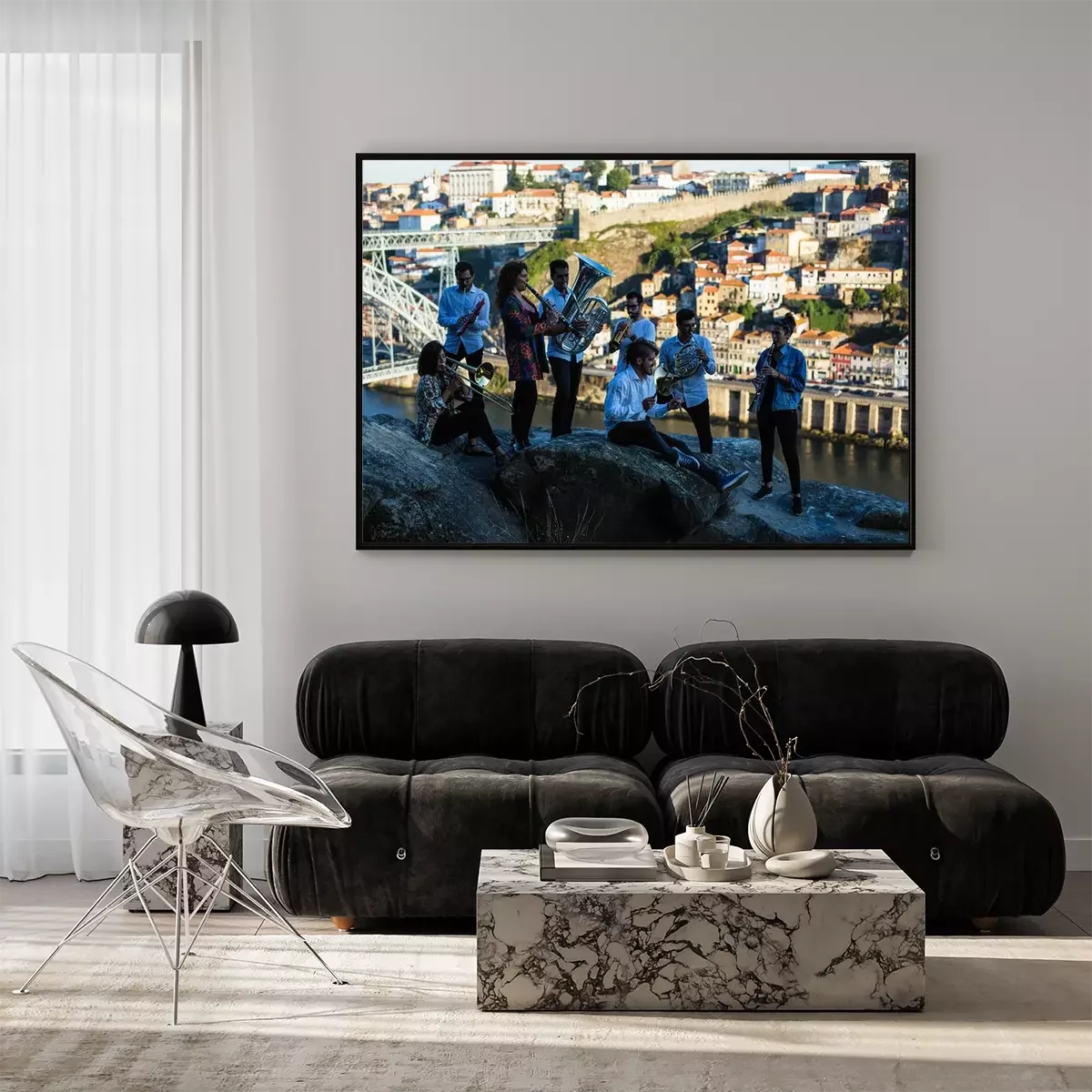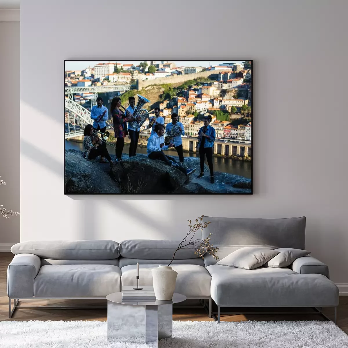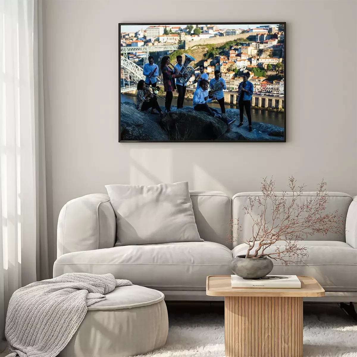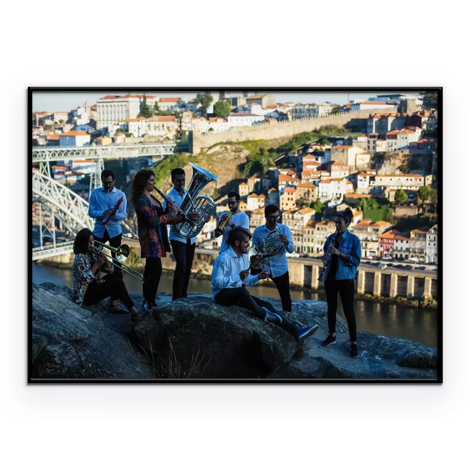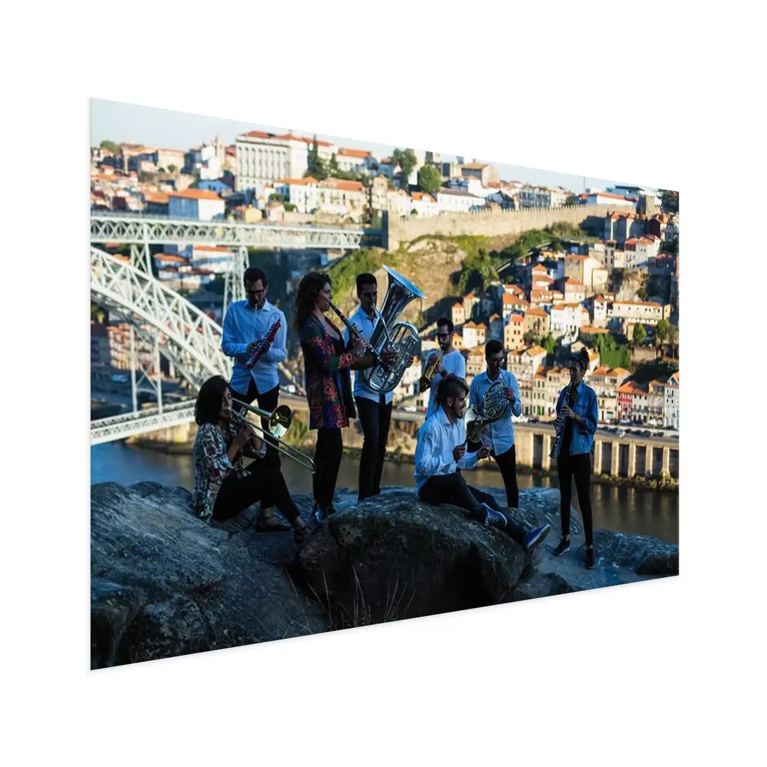 Poster  Group of musicians, Jazz band, play music in the old Porto, Portugal.