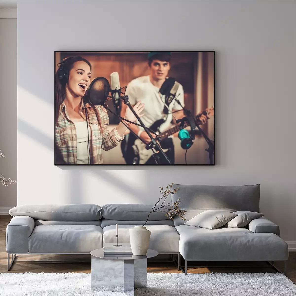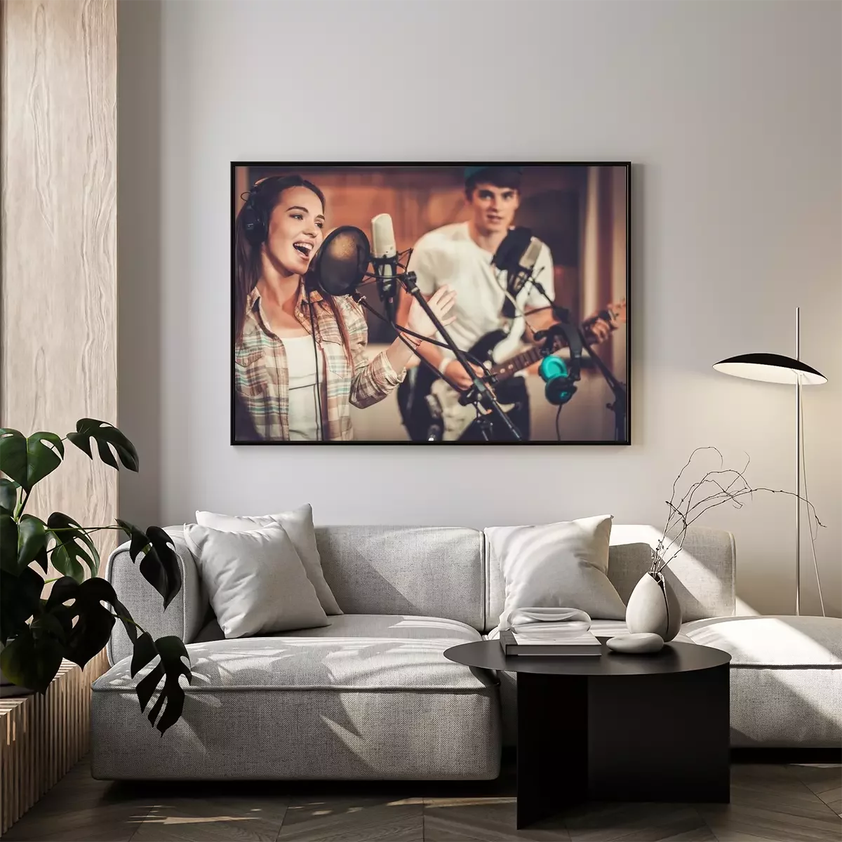 Poster  Groupe de musique effectuer dans un studio d'enregistrement
