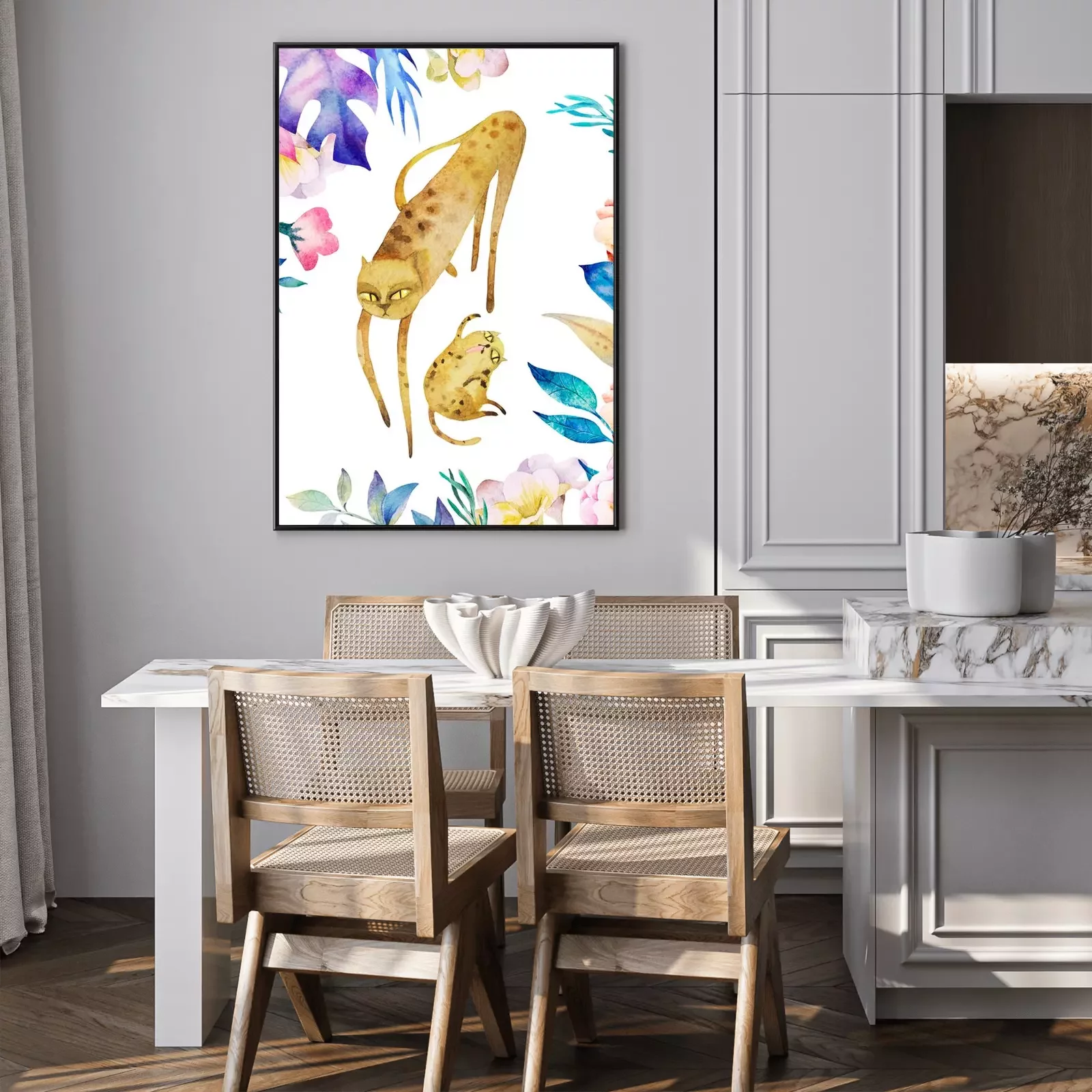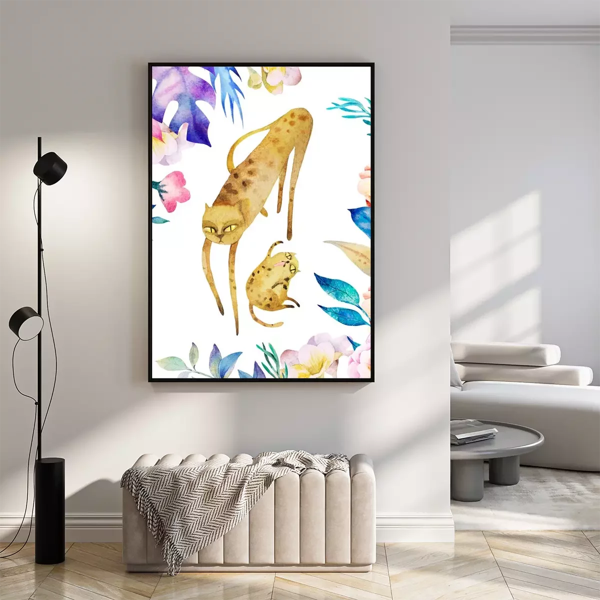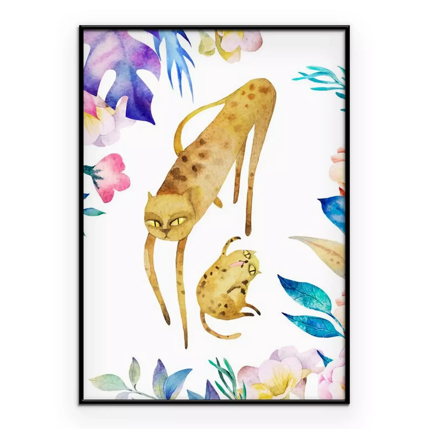 Poster  Guépards aquarelles parmi les feuilles multicolores