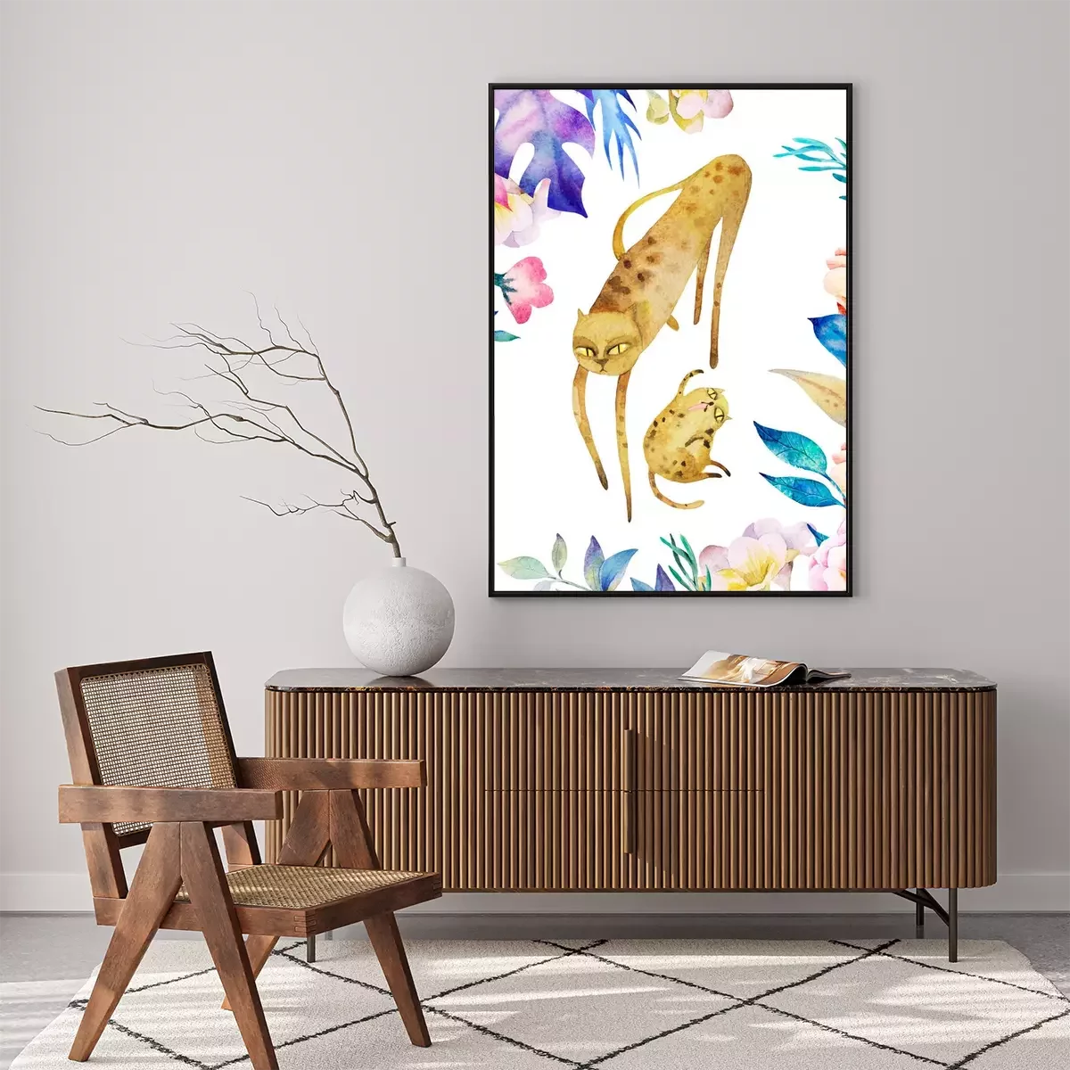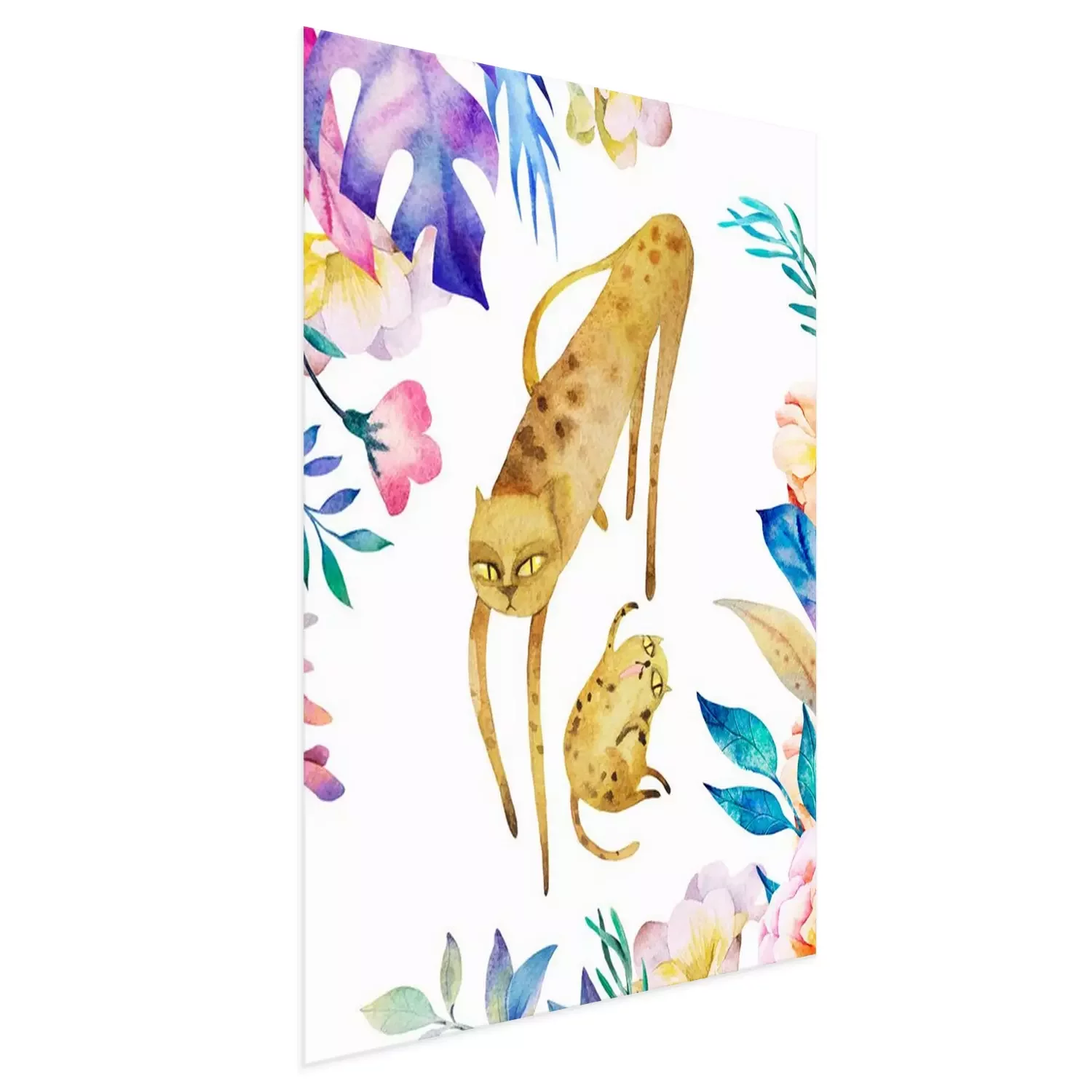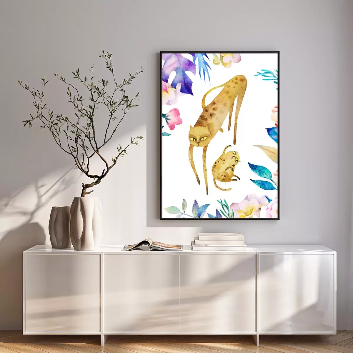 Poster  Guépards aquarelles parmi les feuilles multicolores