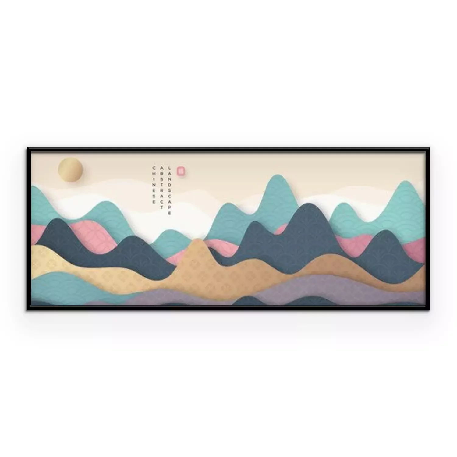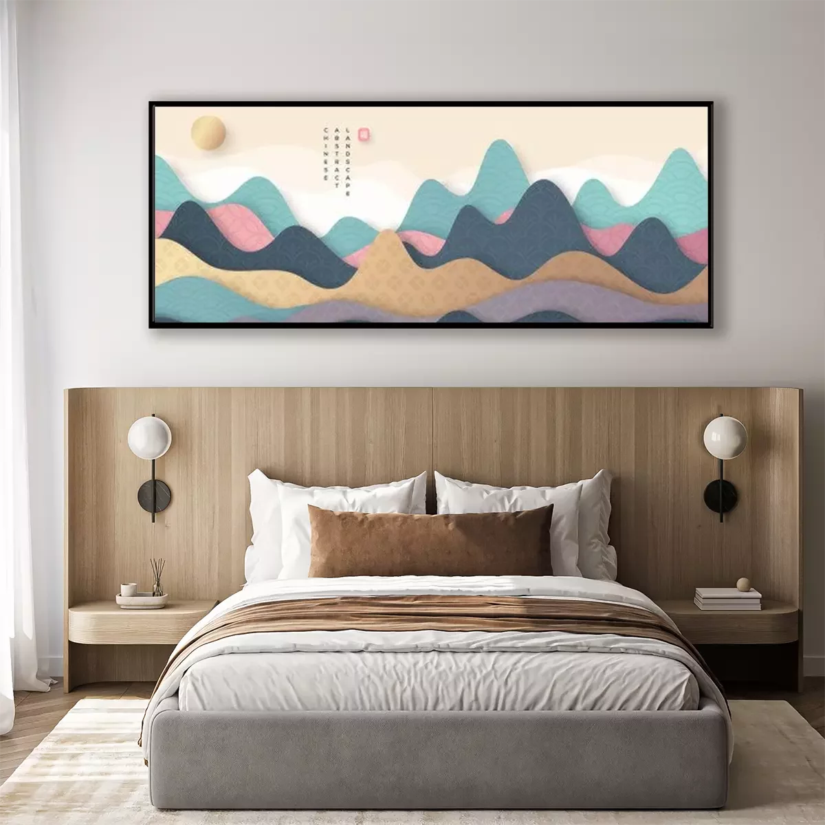 Poster : Guilin Mountains abstract landscape in chinese style with asian patterns. Vector illustration. Symbol Fu means blessing and happiness.