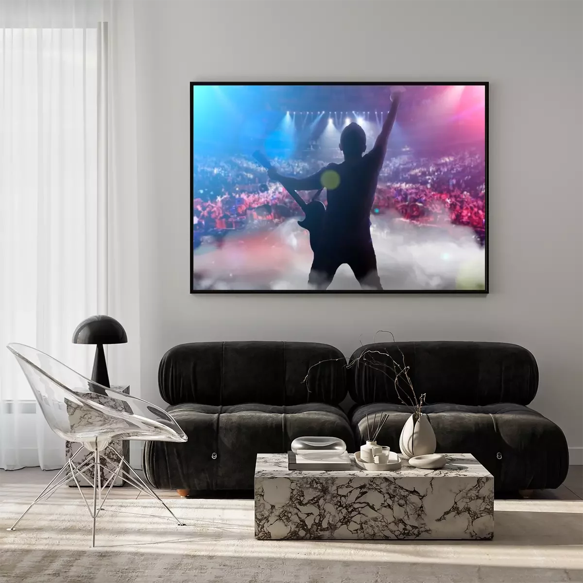 Poster  guy on stage with a guitar playing a concert