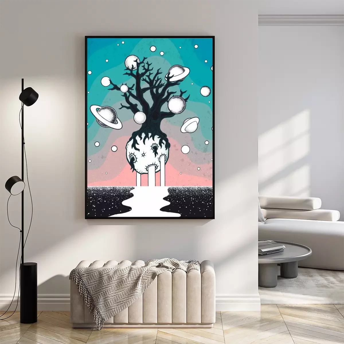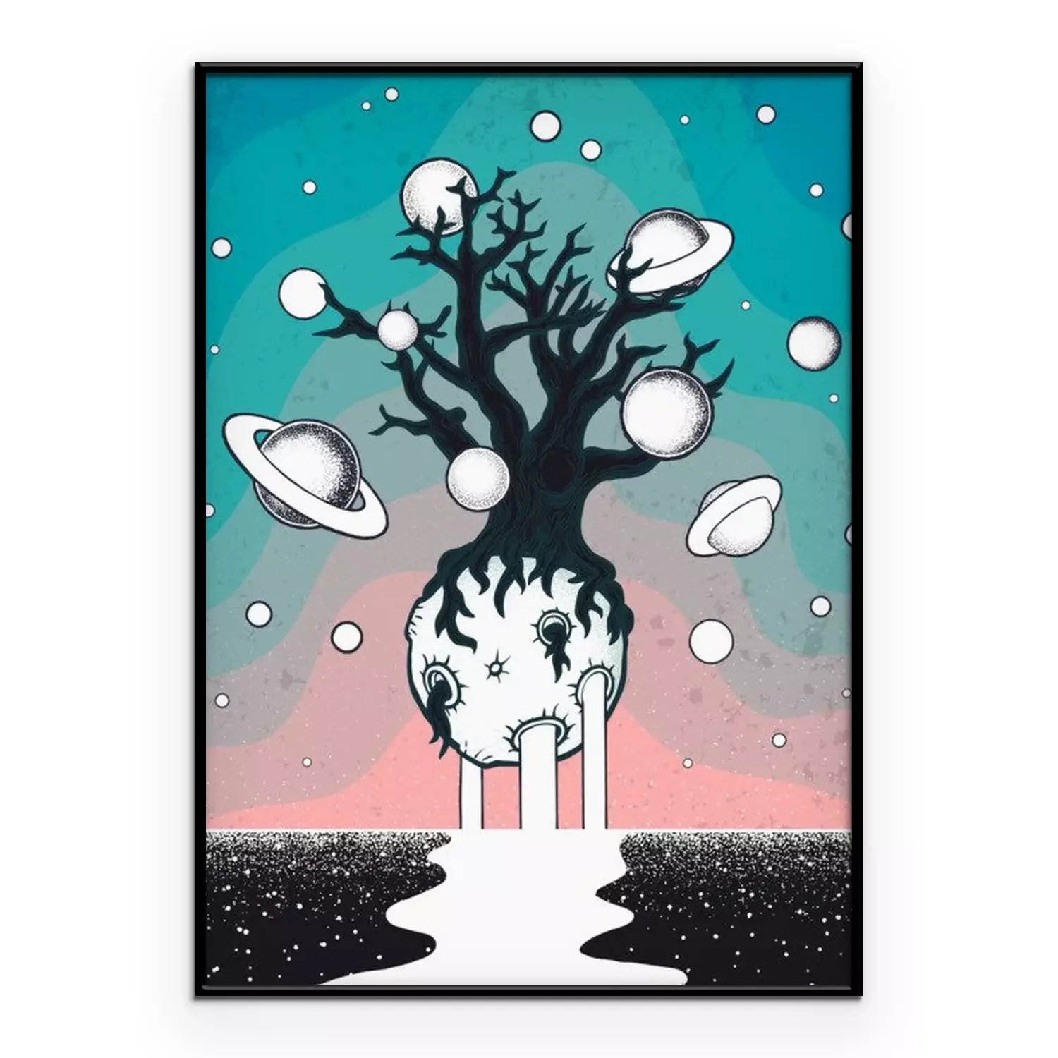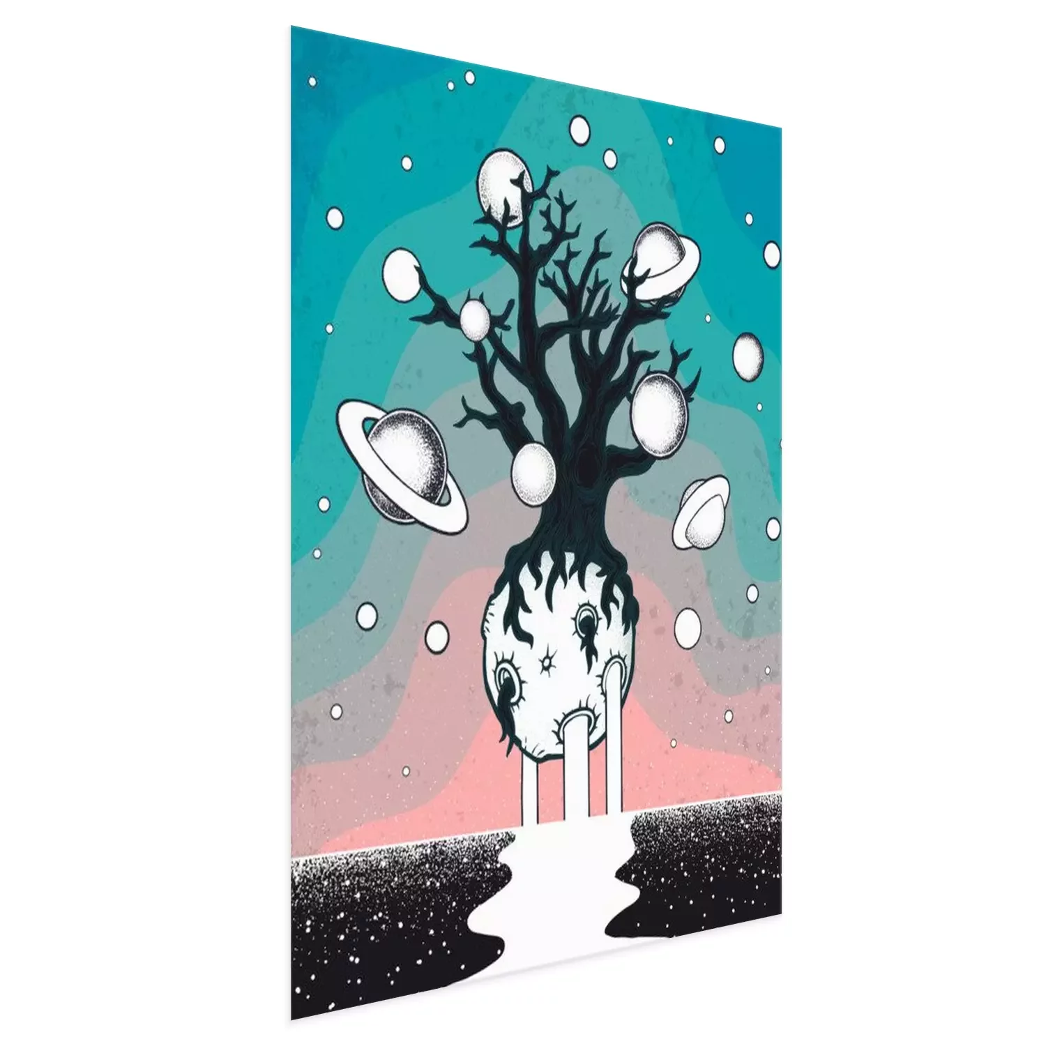 Poster  Hand drawn abstract mystery tree on the moon in deep space.