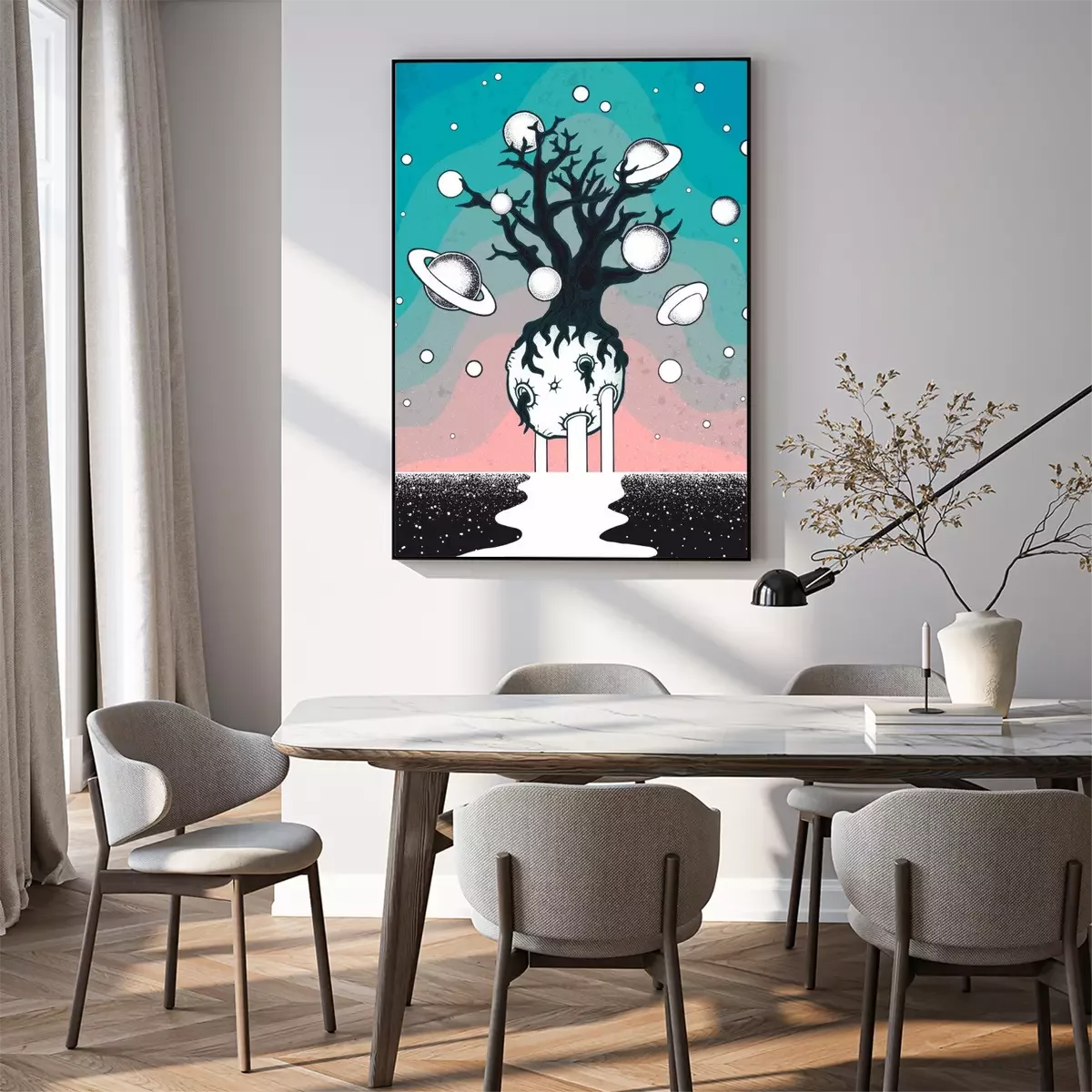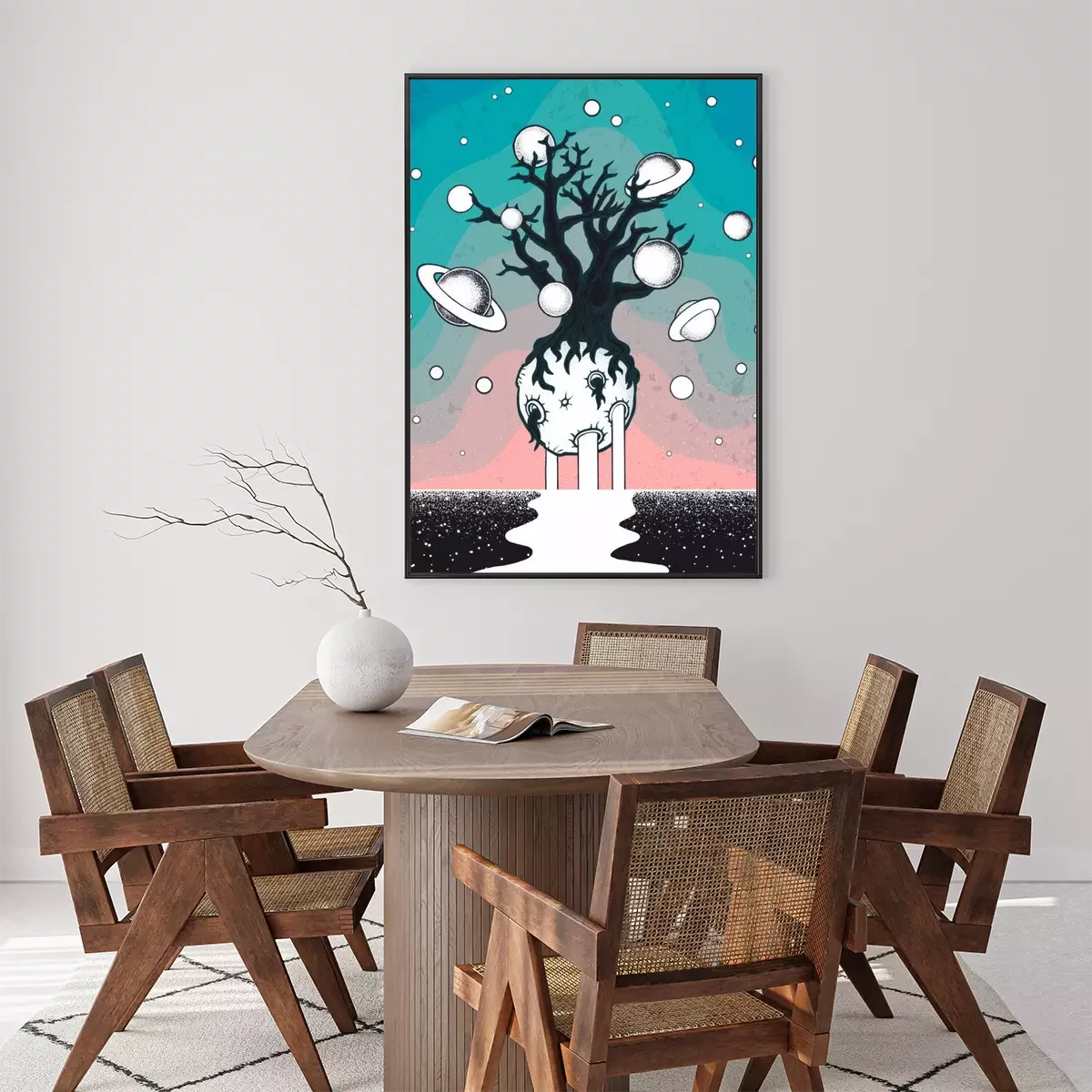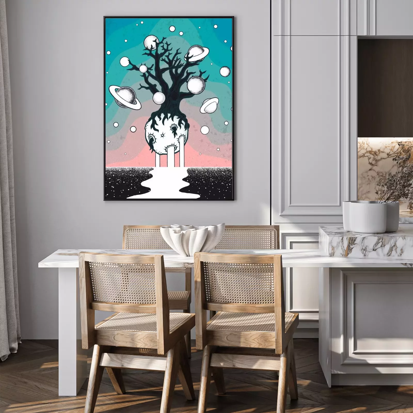 Poster  Hand drawn abstract mystery tree on the moon in deep space.