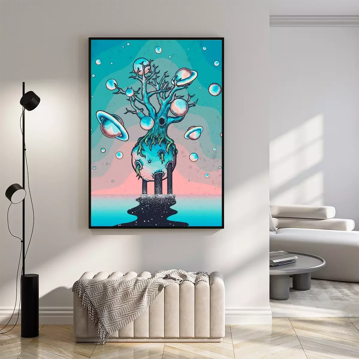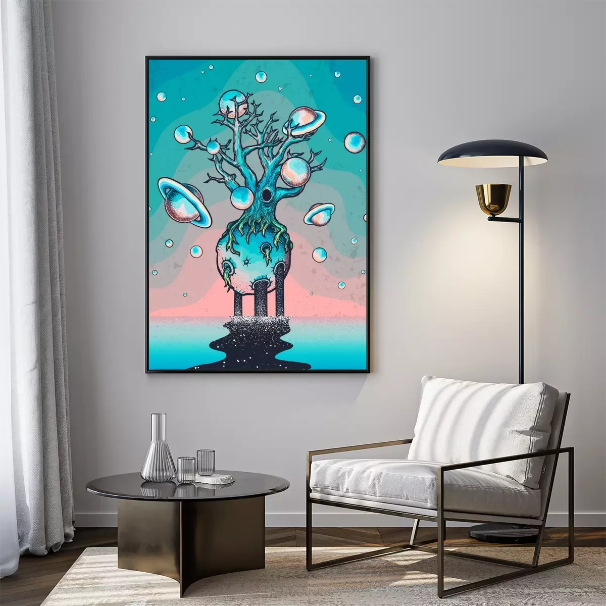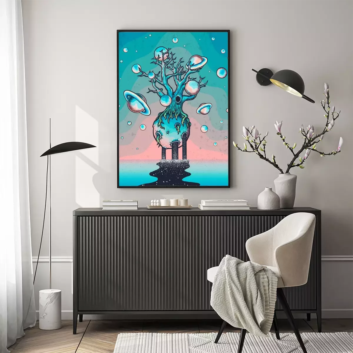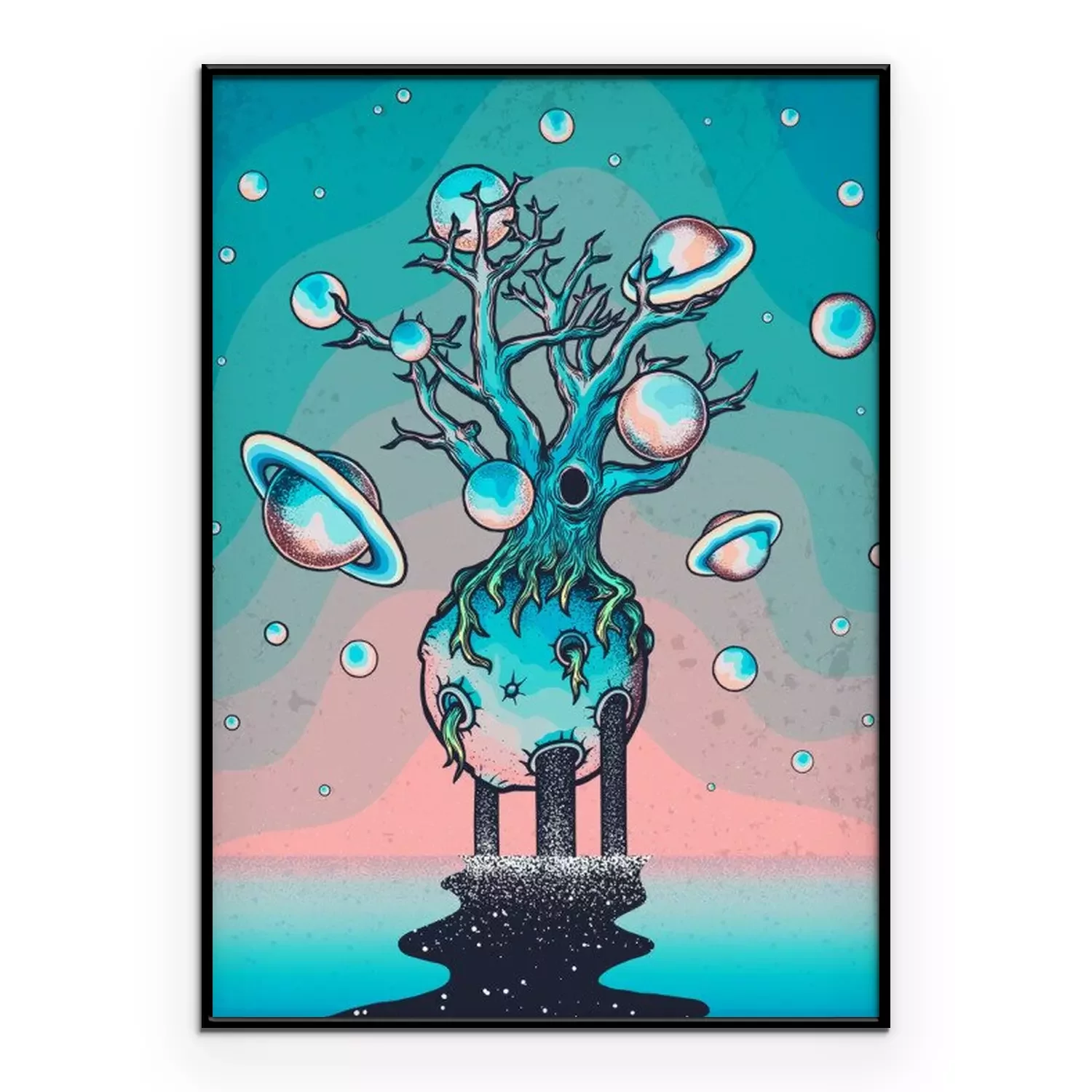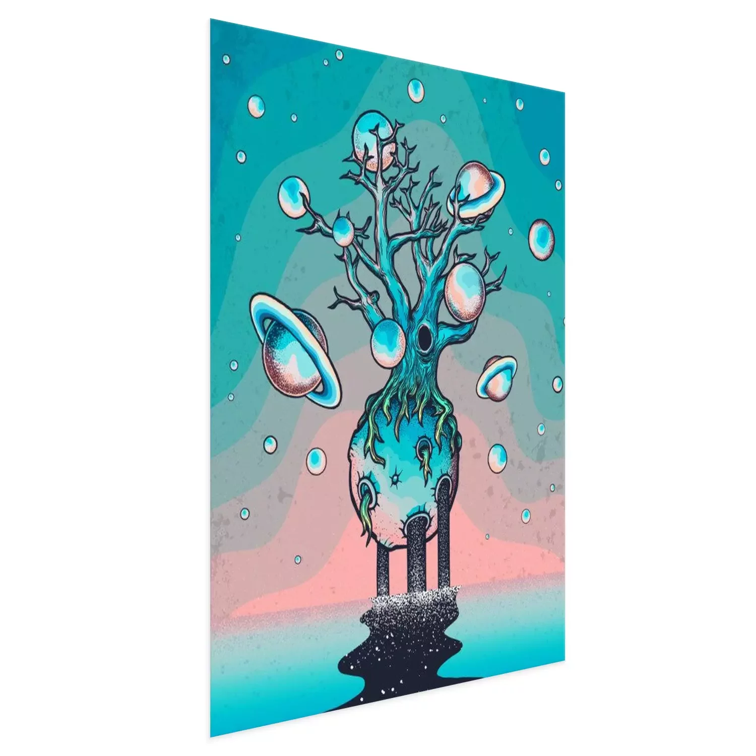 Poster  Hand drawn abstract mystery tree on the moon in deep space.