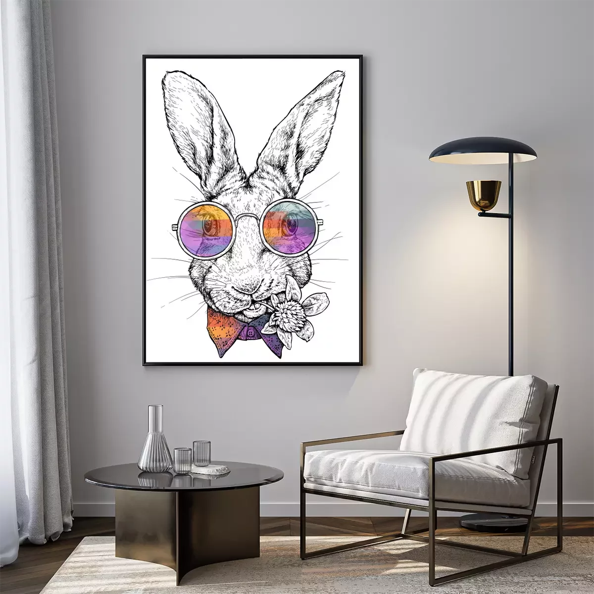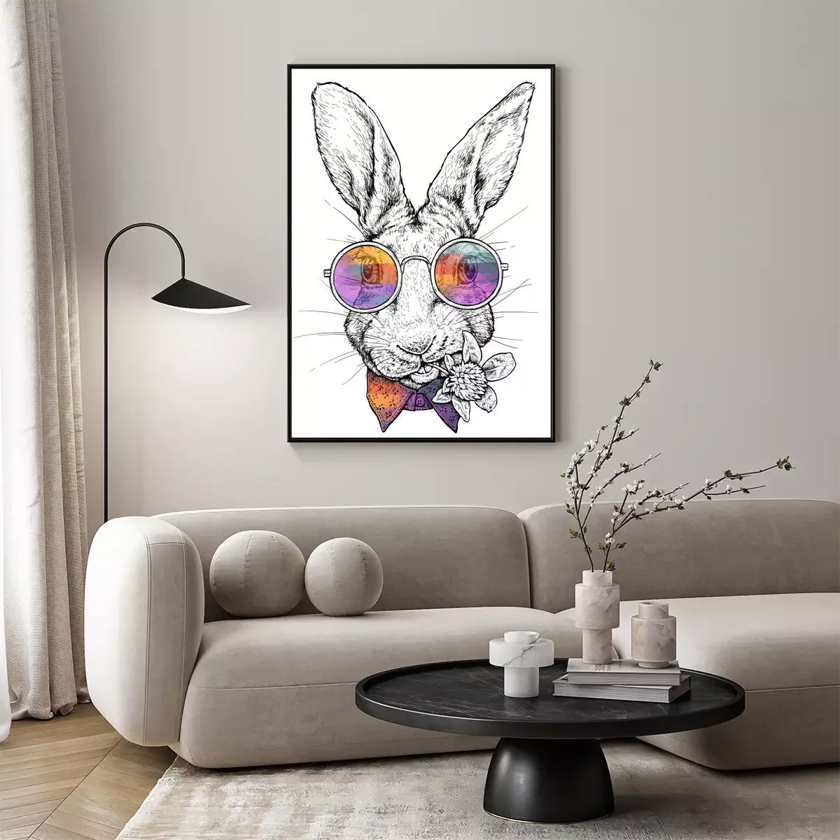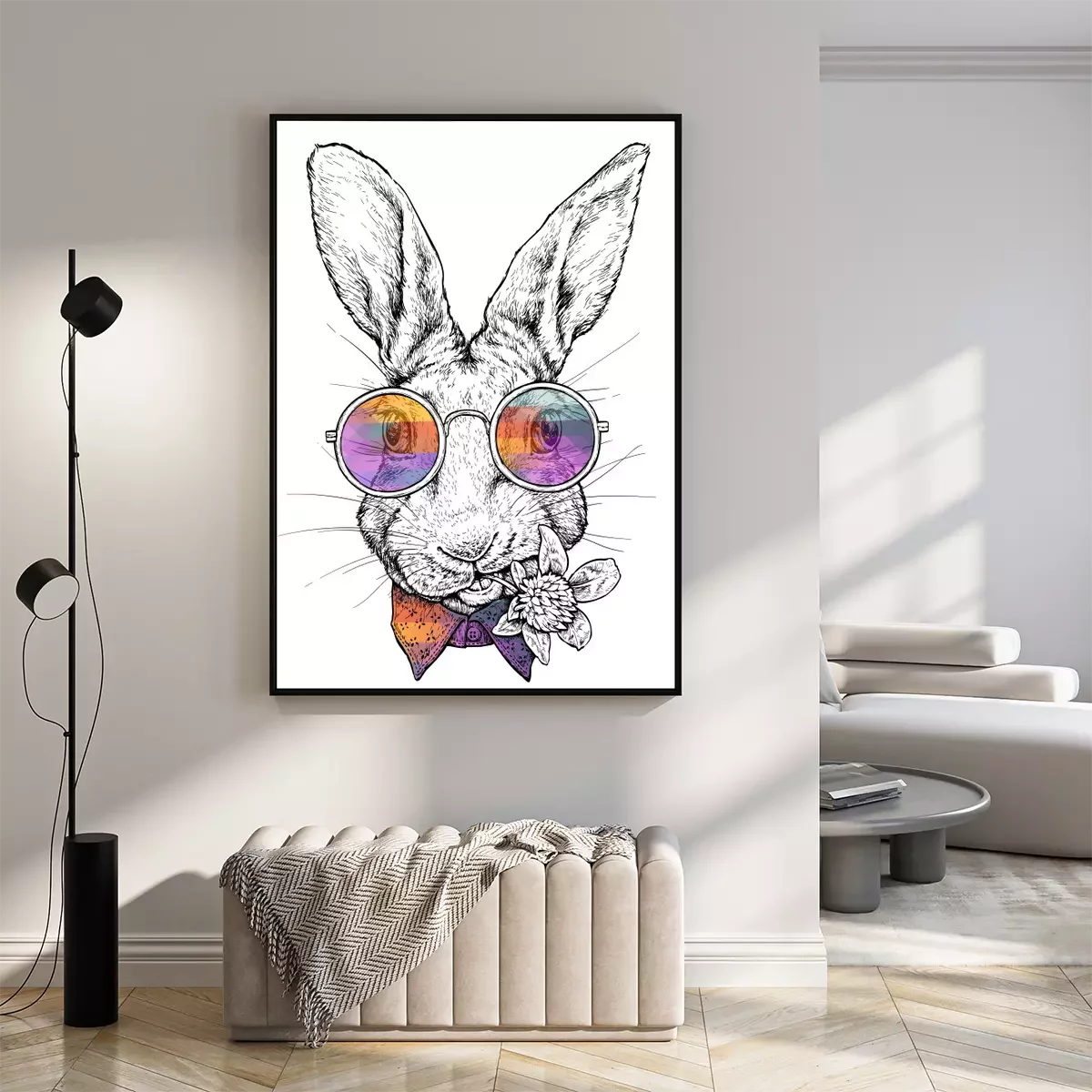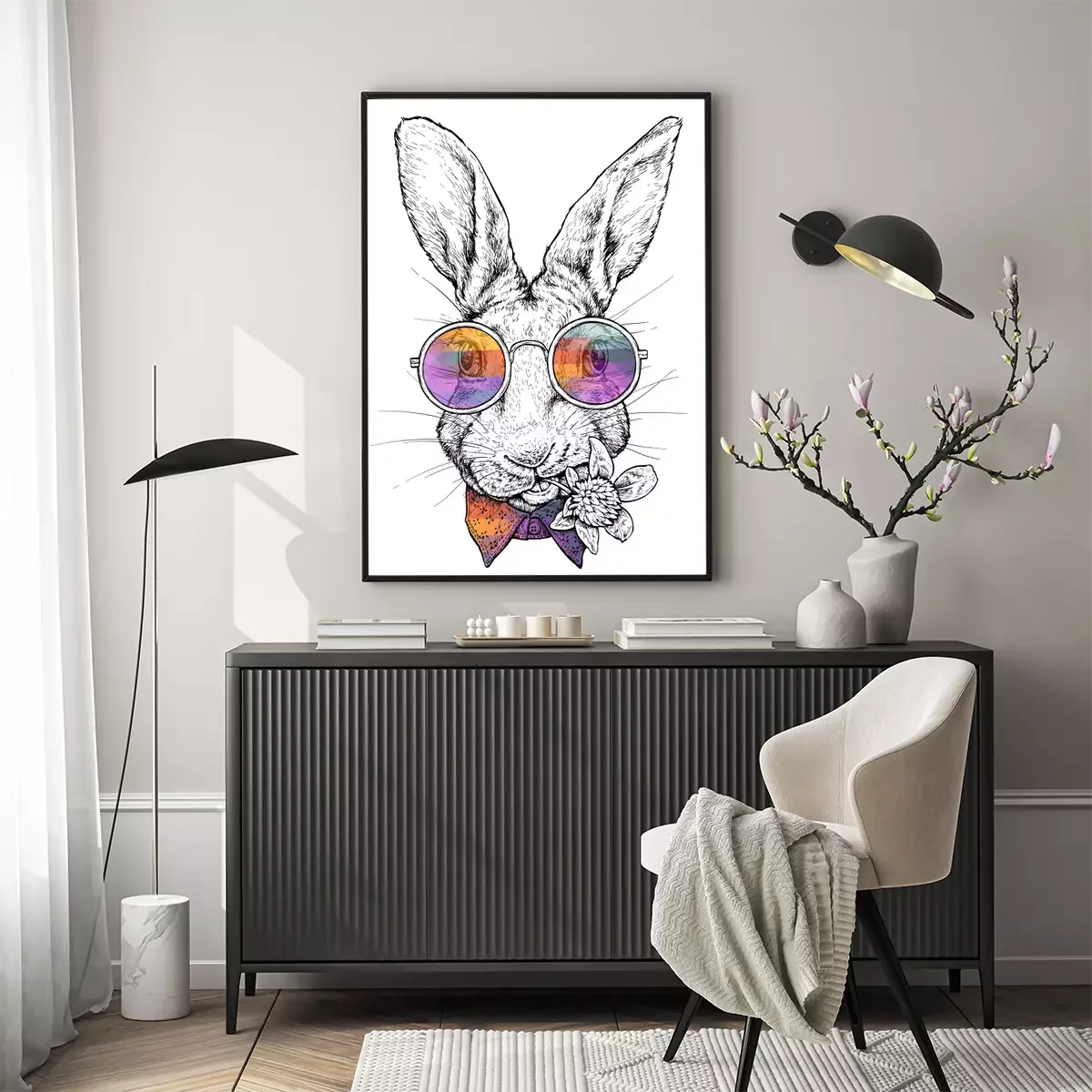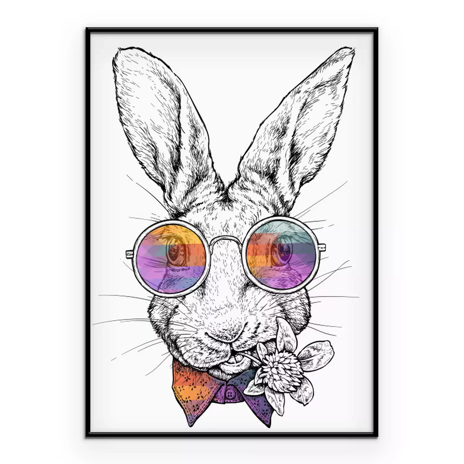 Poster : Hand drawn hipster style portrait of Funny Rabbit in glasses. Vector illustration isolated on white