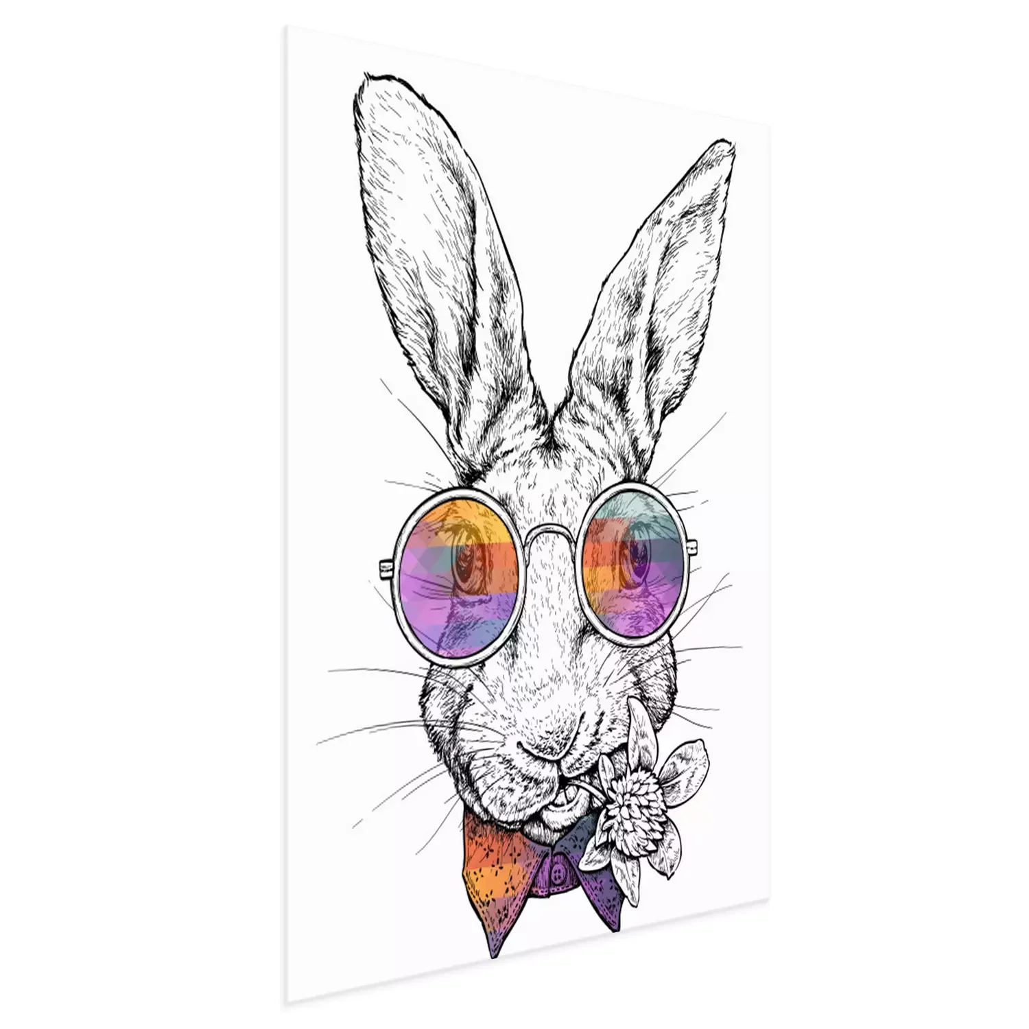 Poster  Hand drawn hipster style portrait of Funny Rabbit in glasses. Vector illustration isolated on white