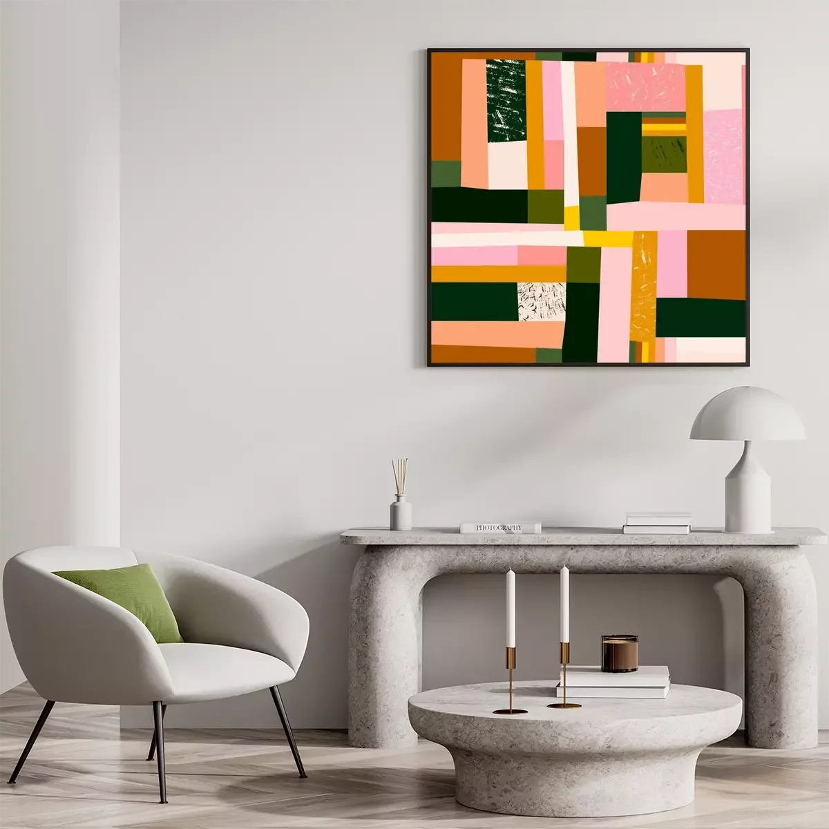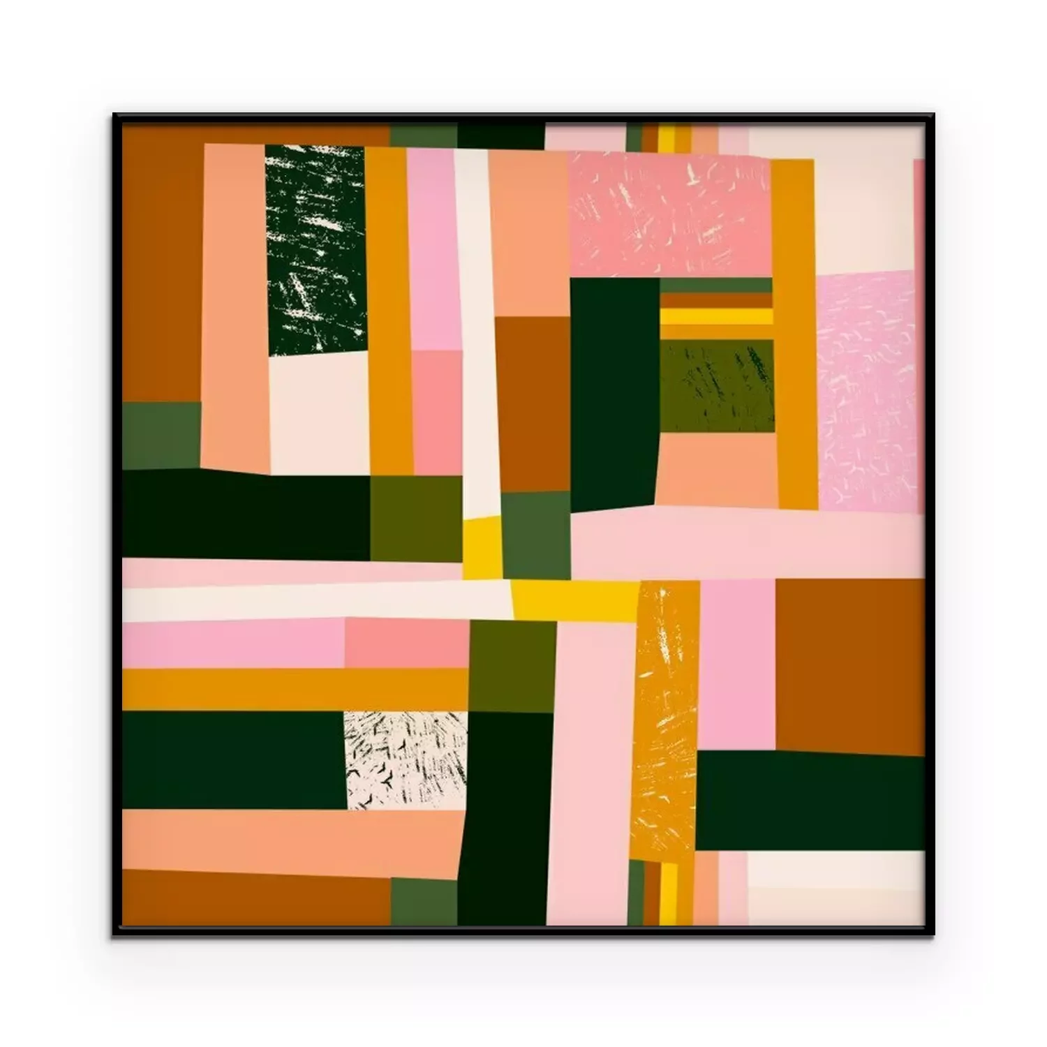 Poster  Hand drawn various abstract rectangles and lines. Mosaic style. Contemporary vector seamless pattern. Pastel colors. Perfect for textile prints