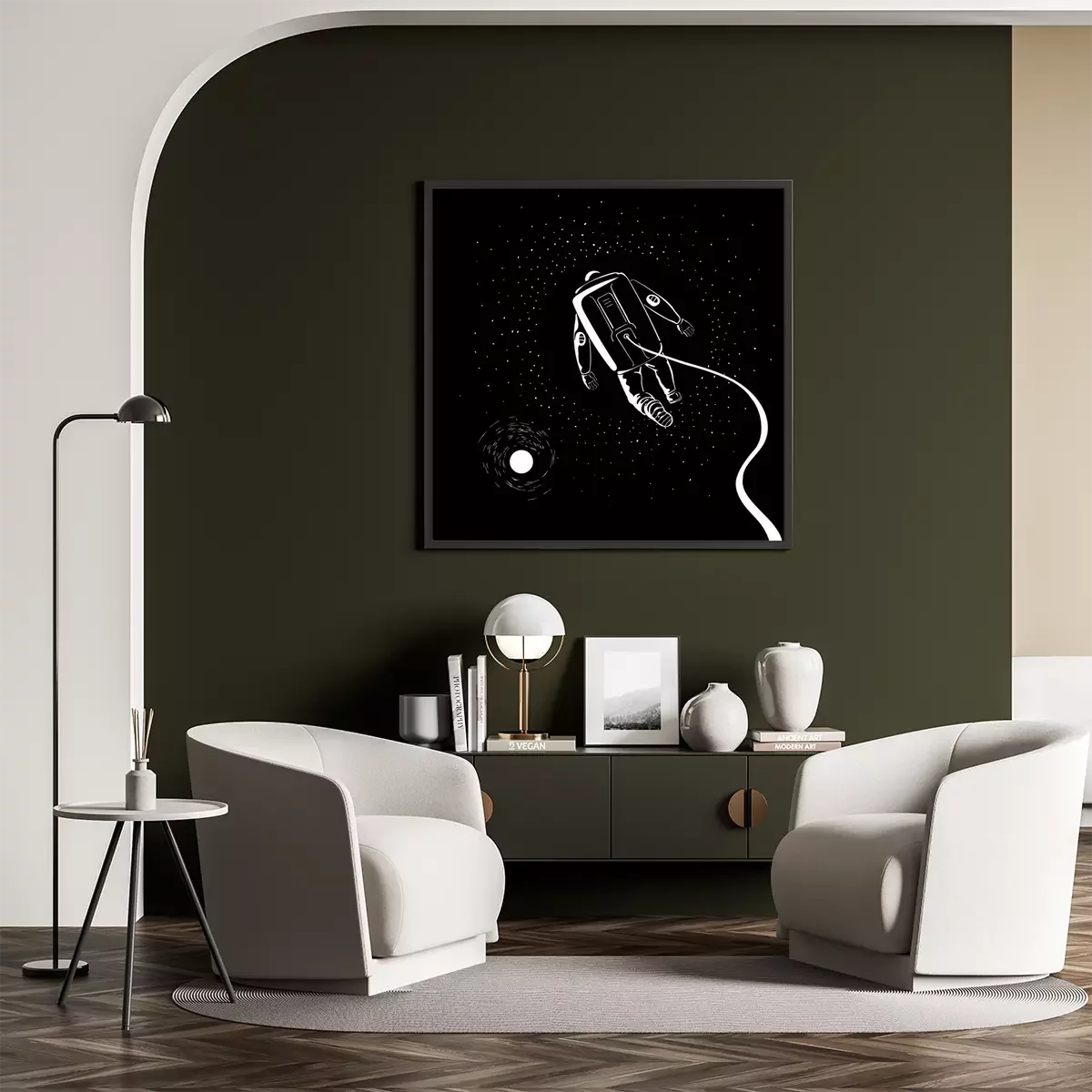 Poster  Hand drawn vector astronaut character. Spaceman wearing a space suit and flying in the cosmos