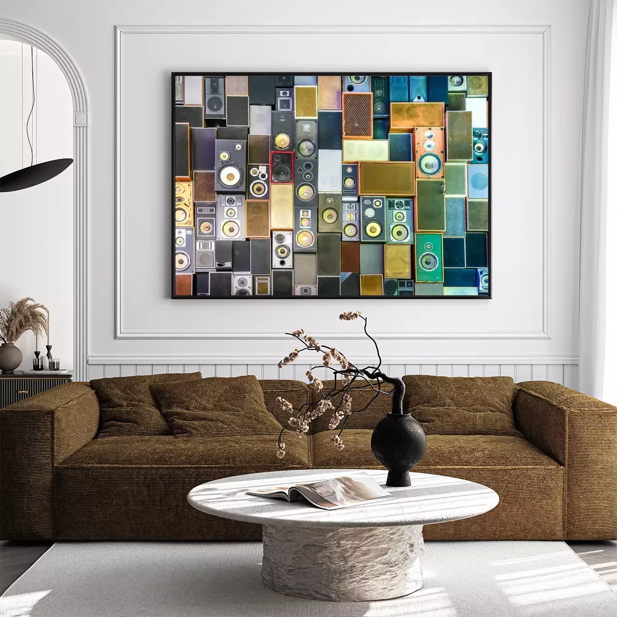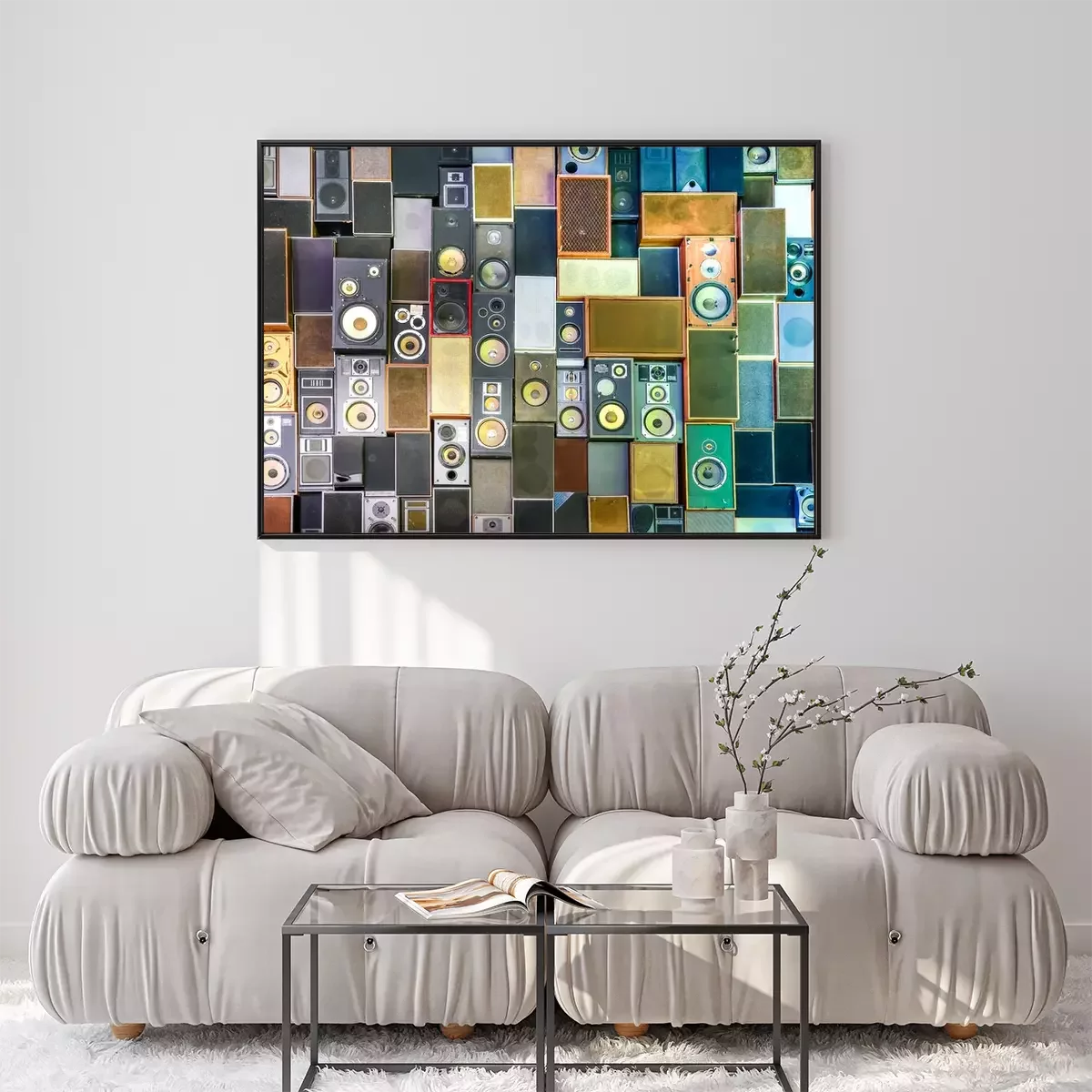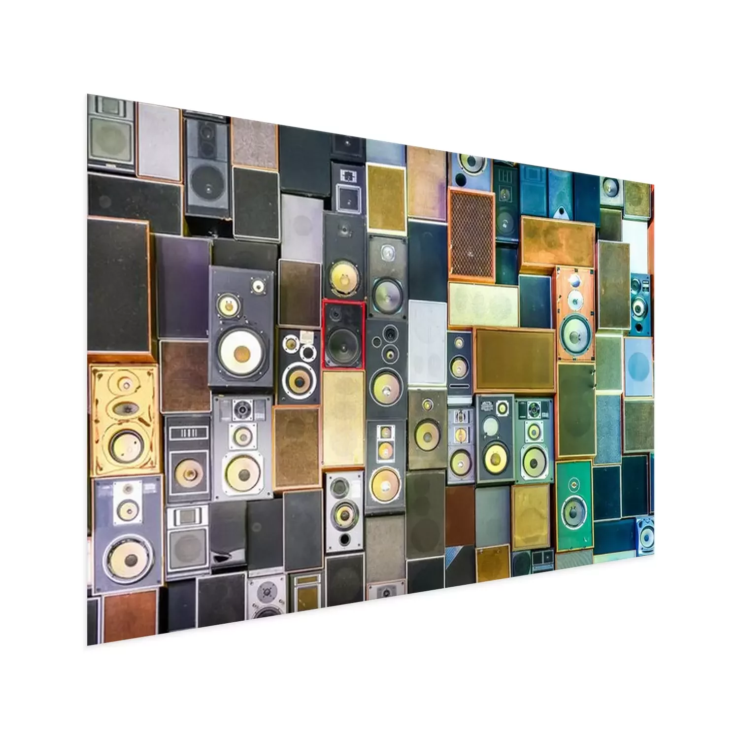 Poster : haut-parleurs de musique sur le mur dans le style vintage rétro