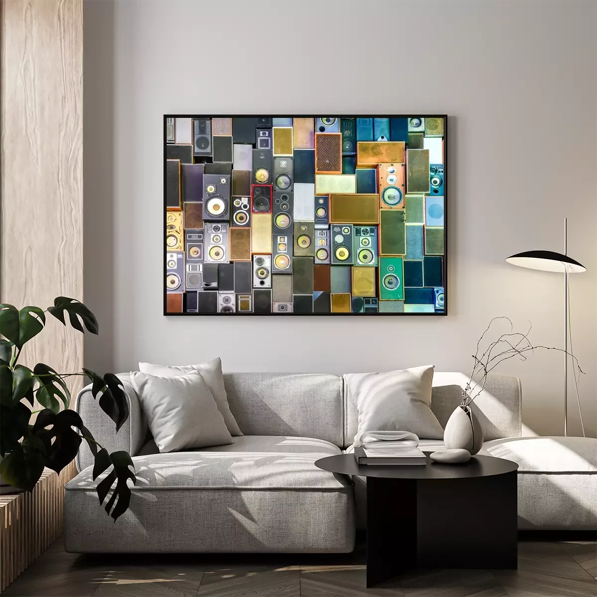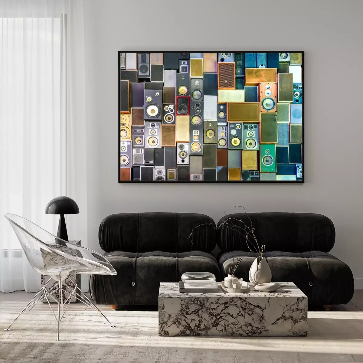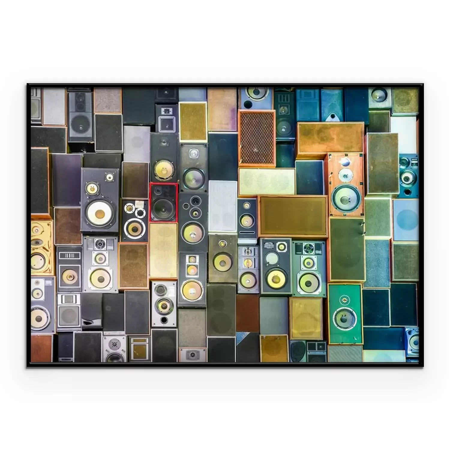 Poster : haut-parleurs de musique sur le mur dans le style vintage rétro